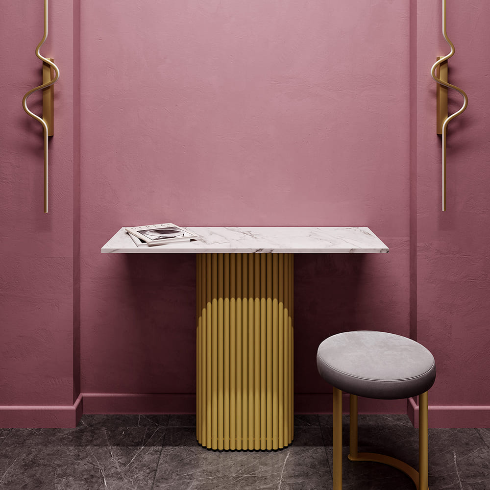 Консоль TRUBIS 100 х 35 см, белый мрамор/золотой