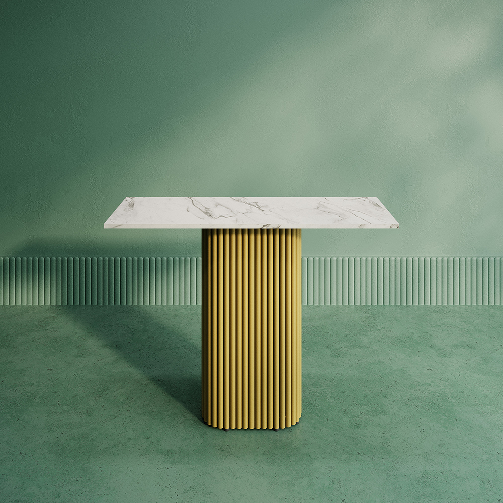 - Консоль TRUBIS 100 х 35 см, белый мрамор/золотой