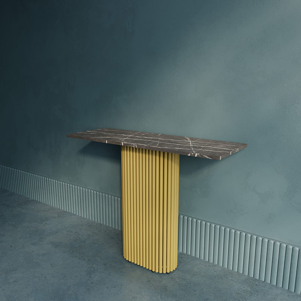 - Консоль TRUBIS 100 х 35 см, темный мрамор/золотой