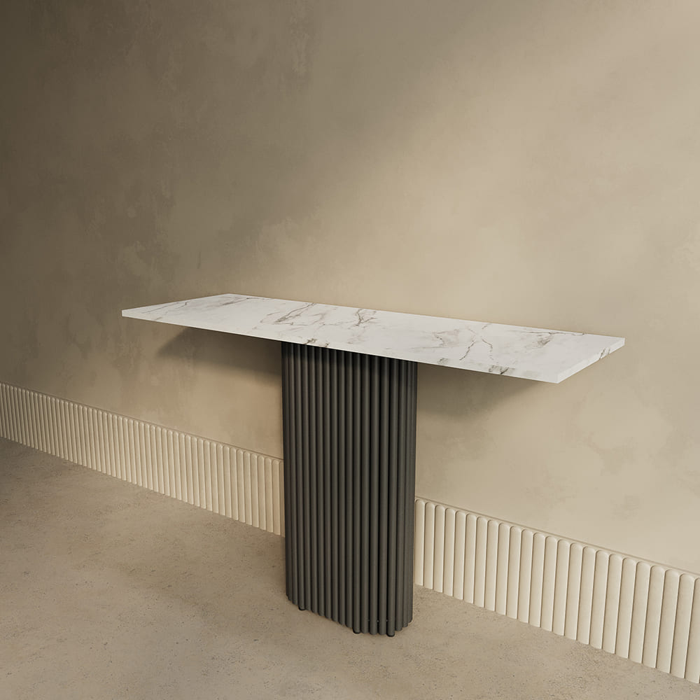 - Консоль TRUBIS 120 х 40 см, белый мрамор/черный