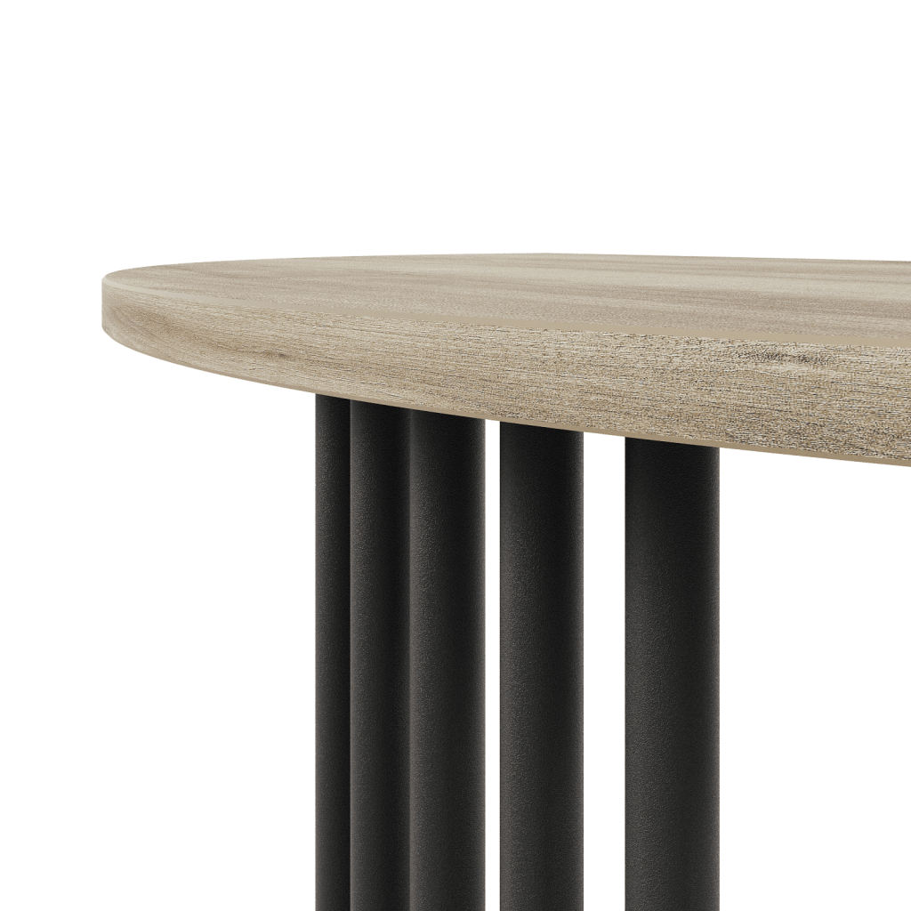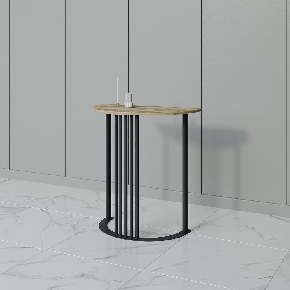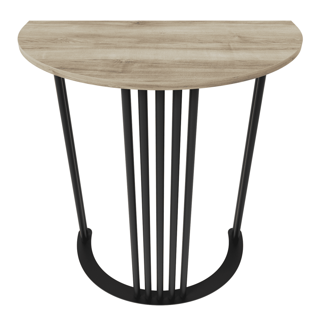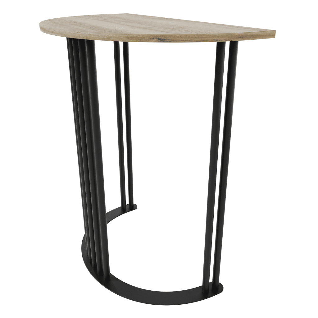 Консоль VIOLUR в форме полукруга привлекает внимание лаконичным дизайном и функциональностью. Металлическое основание дополняет столешница из ЛДСП, толщиной 1.6 см. Данная модель идеально впишется в интерьер и осовременит стильный дизайн, создаст атмосферу уюта и комфорта. Консоли из металла популярны у дизайнеров для создания интерьеров в стиле лофт, минимализм, хай-тек.