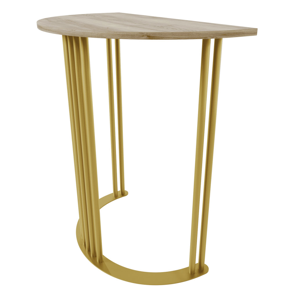 Консоль VIOLUR в форме полукруга привлекает внимание лаконичным дизайном и функциональностью. Металлическое основание дополняет столешница из ЛДСП, толщиной 1.6 см. Данная модель идеально впишется в интерьер и осовременит стильный дизайн, создаст атмосферу уюта и комфорта. Консоли из металла популярны у дизайнеров для создания интерьеров в стиле лофт, минимализм, хай-тек.