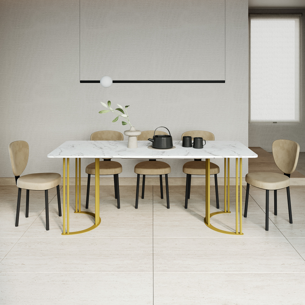 - Обеденный раздвижной стол VIOLUR 120/190 х 80 см, белый мрамор/золотой