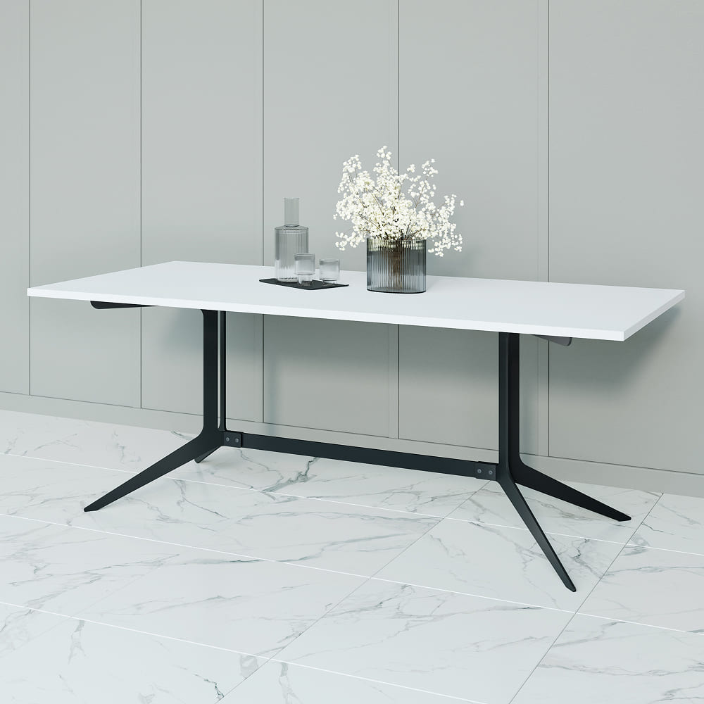 Обеденный стол AMELIX 200 х 90 см, белый/черный