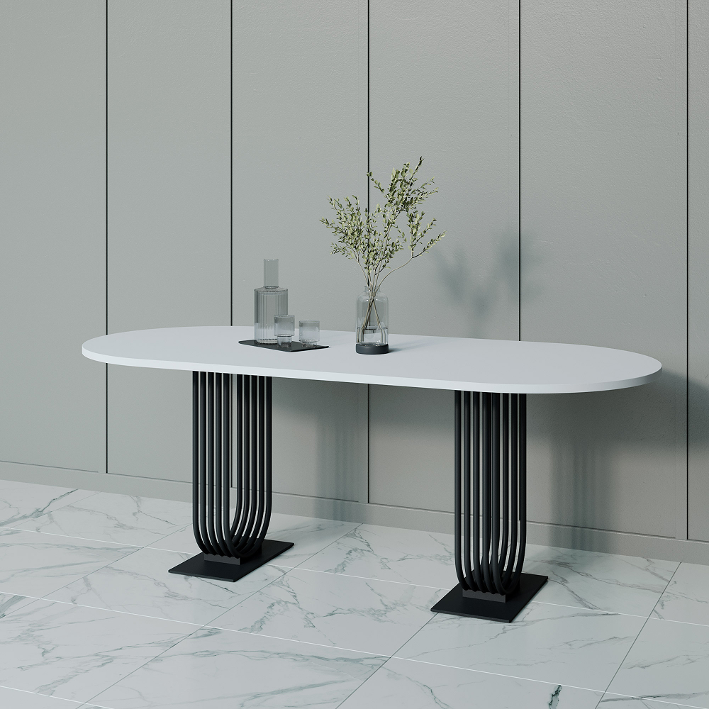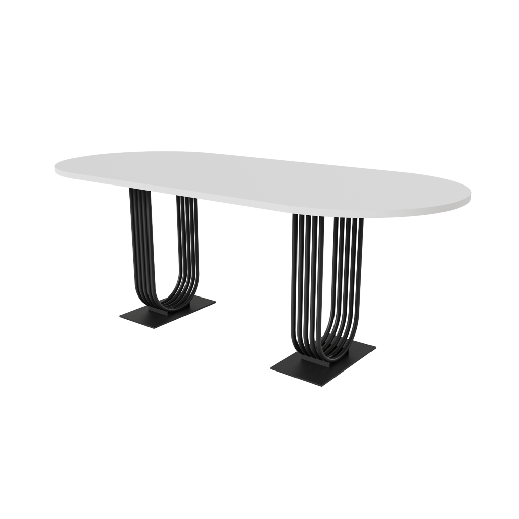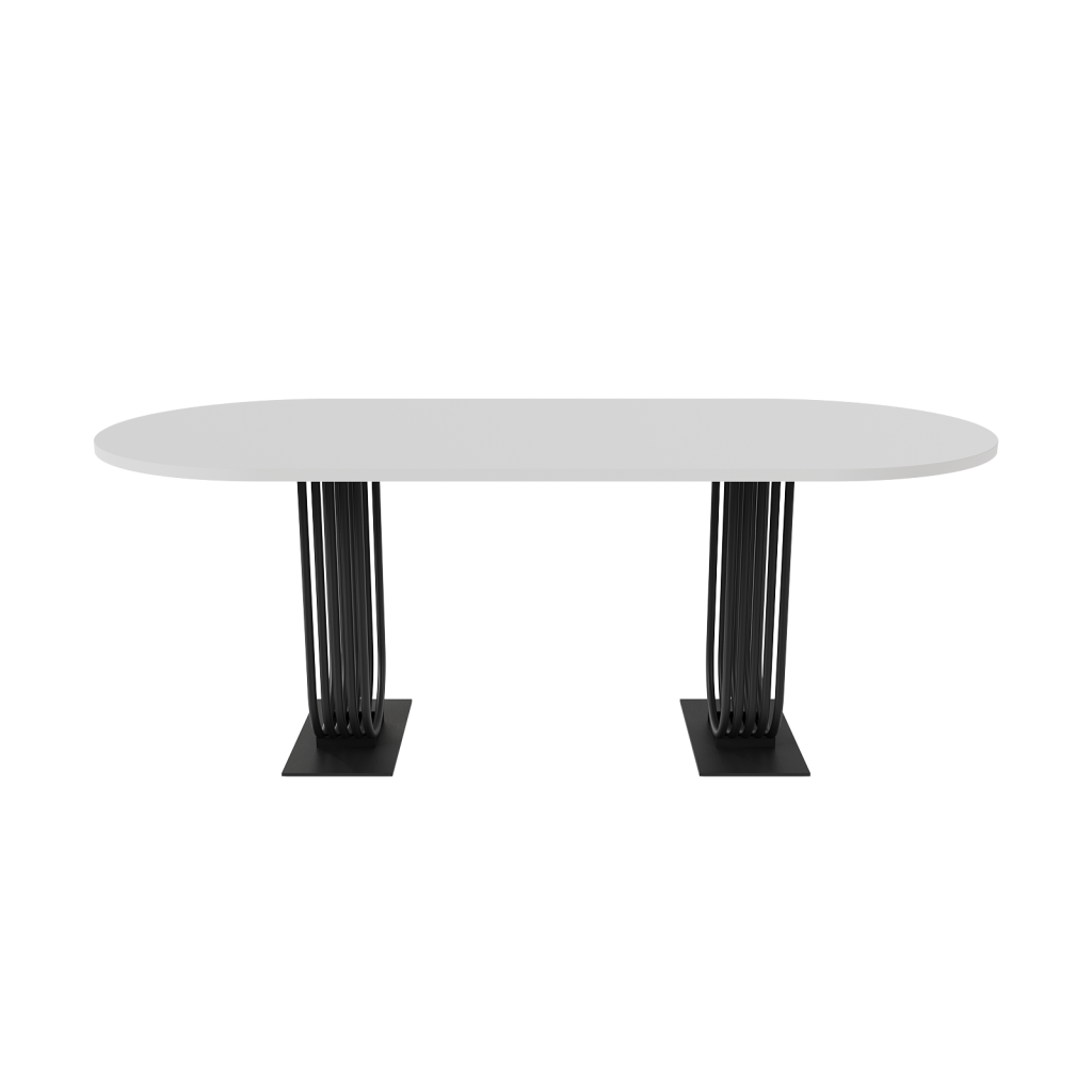 Лаконичный внешний вид овального стола серии ARFEO Duo, основанный на строгих прямых линиях, обеспечивает универсальность, позволяя органично вписаться в любой интерьер – от уютной домашней кухни до современного офисного пространства. Столешница, изготовленная из высококачественного ЛДСП толщиной 2.5 см, отличается не только прочностью и долговечностью, но и приятной на ощупь текстурой. Основа стола – прочный металлический каркас, выполненный из трубы диаметром 2 см. Такая конструкция гарантирует не только впечатляющую несущую способность, позволяющую комфортно разместить за столом от 4 до 6 человек, но и неповторимый индустриальный шарм. Обработка металла – это высококачественная матовая порошковая покраска, доступная в трех классических цветах: золотом, черном и белом. Порошковое покрытие не только обеспечивает привлекательный внешний вид, но и защищает металл от коррозии и механических повреждений, гарантируя долгий срок службы изделия.