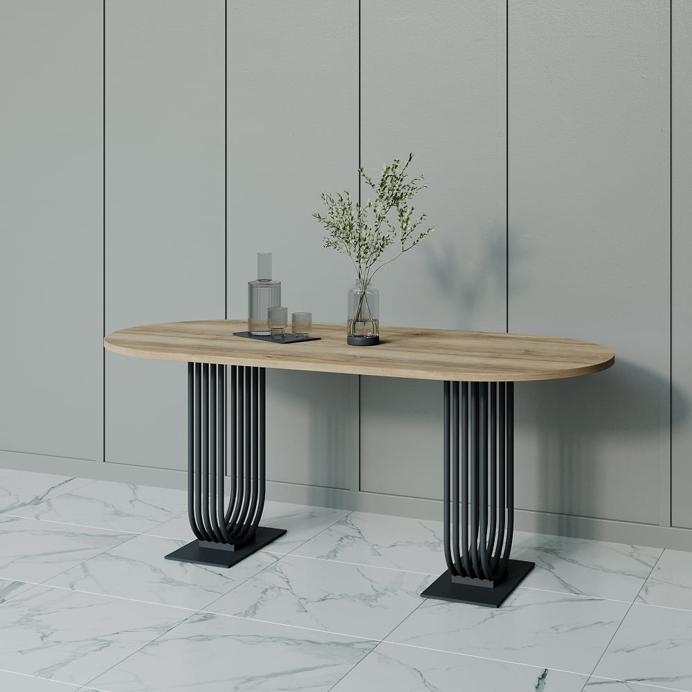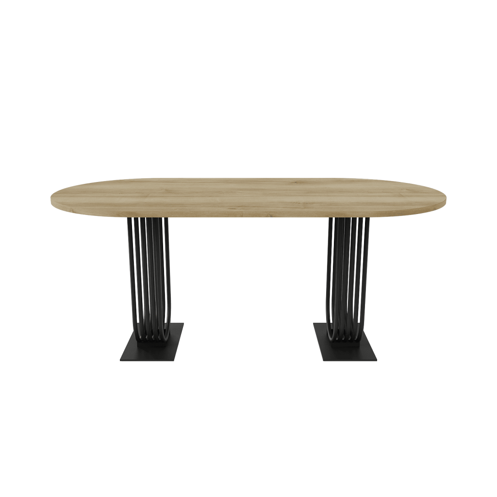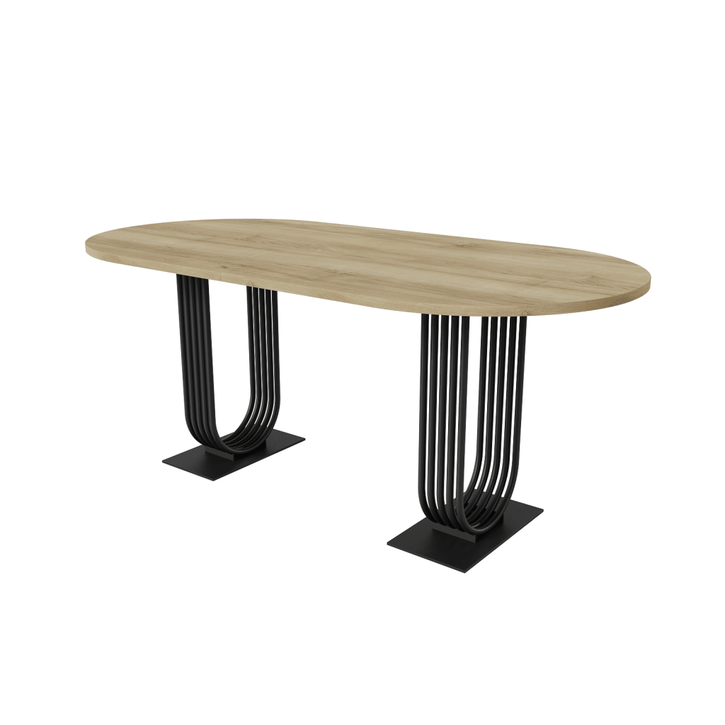 Лаконичный внешний вид овального стола серии ARFEO Duo, основанный на строгих прямых линиях, обеспечивает универсальность, позволяя органично вписаться в любой интерьер – от уютной домашней кухни до современного офисного пространства. Столешница, изготовленная из высококачественного ЛДСП толщиной 2.5 см, отличается не только прочностью и долговечностью, но и приятной на ощупь текстурой. Основа стола – прочный металлический каркас, выполненный из трубы диаметром 2 см. Такая конструкция гарантирует не только впечатляющую несущую способность, позволяющую комфортно разместить за столом от 4 до 6 человек, но и неповторимый индустриальный шарм. Обработка металла – это высококачественная матовая порошковая покраска, доступная в трех классических цветах: золотом, черном и белом. Порошковое покрытие не только обеспечивает привлекательный внешний вид, но и защищает металл от коррозии и механических повреждений, гарантируя долгий срок службы изделия.