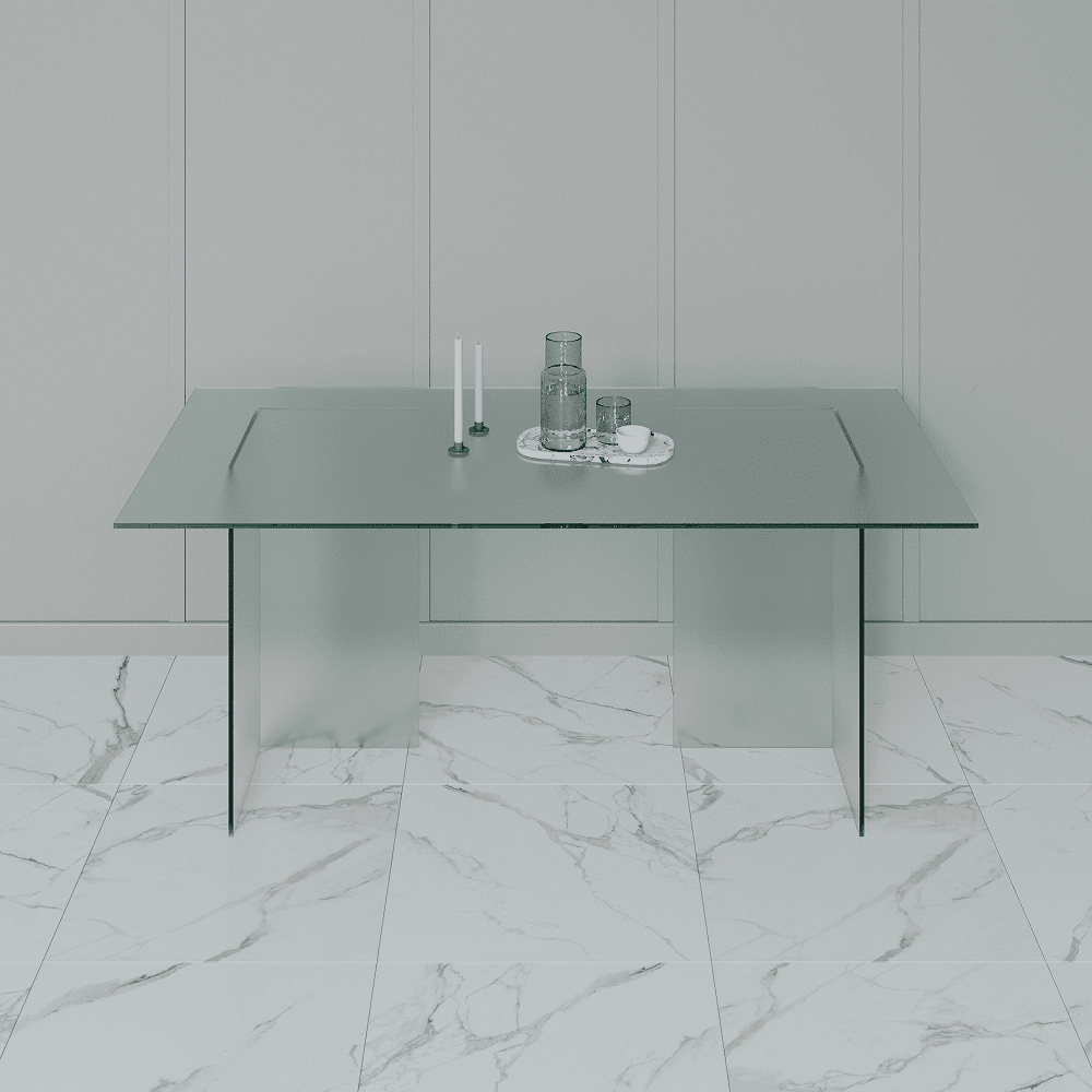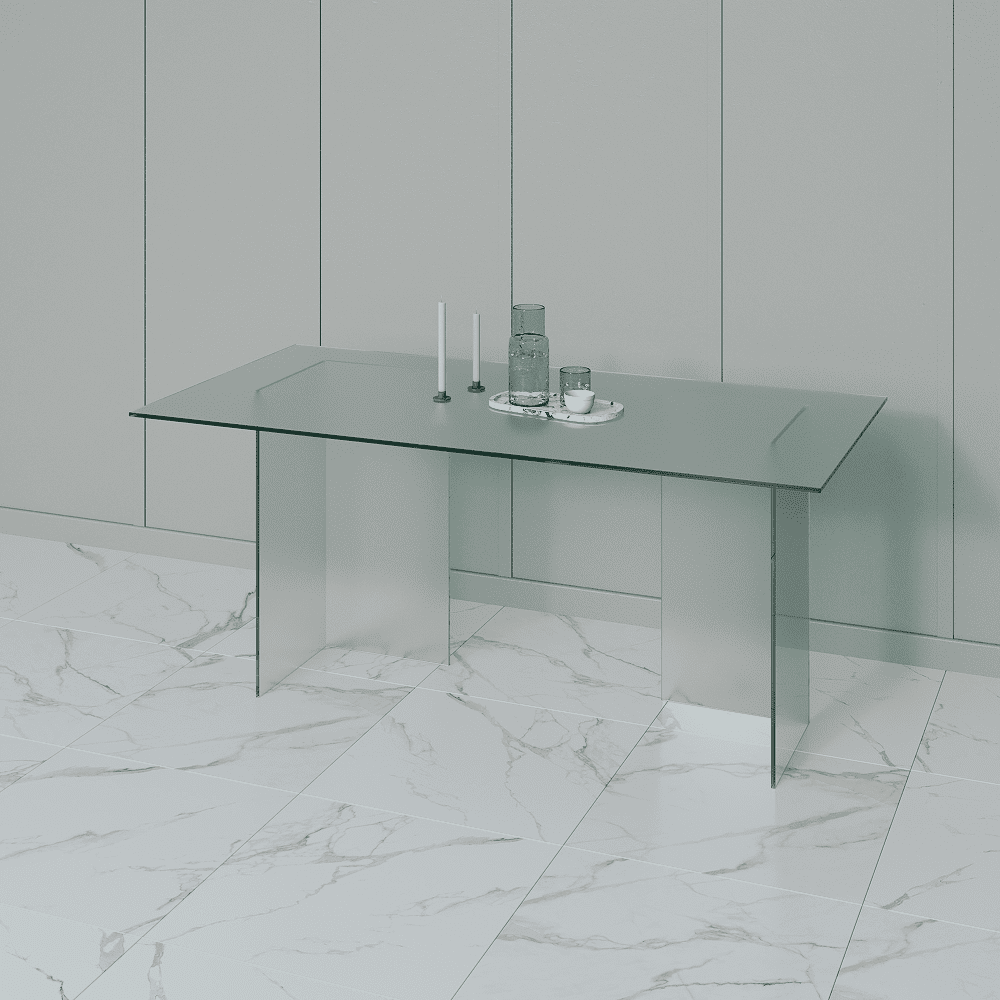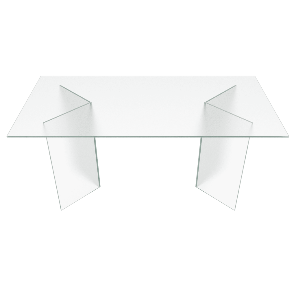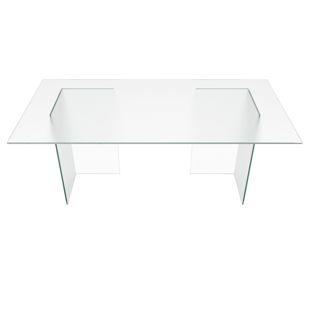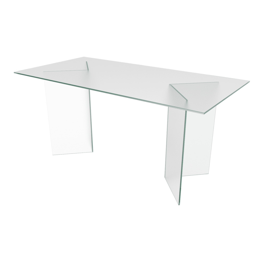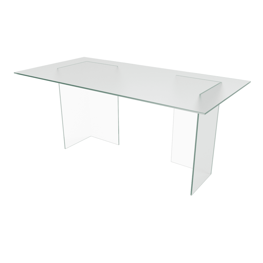 Дизайнерский цельностеклянный стол. Благодаря универсальному дизайну его можно использовать его как рабочий, так и обеденный стеклянный стол. На заказ возможно изготовить стол с уникальными параметрами.