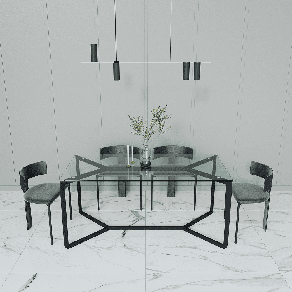 Прямоугольный кухонный стол, состоящий из прозрачного закаленного стекла толщиной 1 см и золотого металлического подстолья, не только прекрасно впишется в интерьер вашего дома, но и станет незаменимым элементом вашего обеденного пространства. Он прекрасно сочетается со стилем LOFT и однозначно будет притягивать взгляды окружающих.