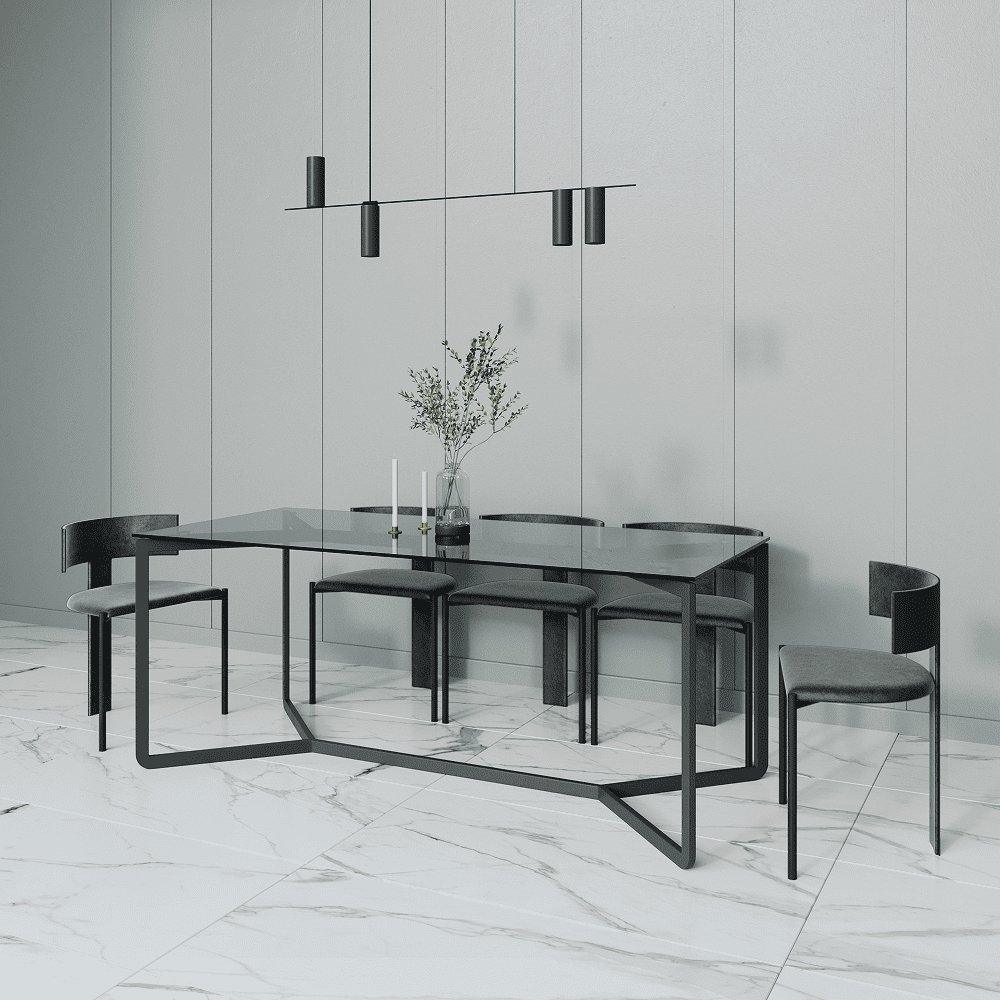 Обеденный стол BEYSO 180 х 80, тонированное стекло/черный