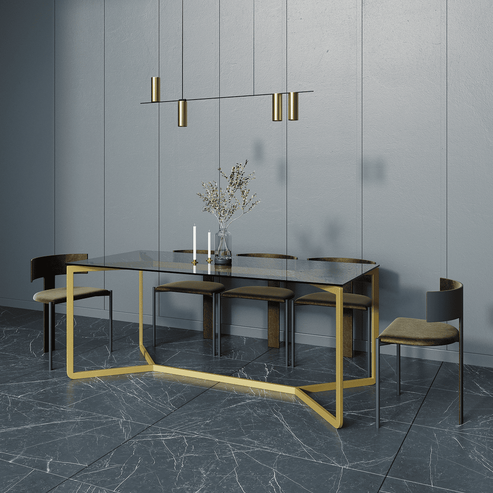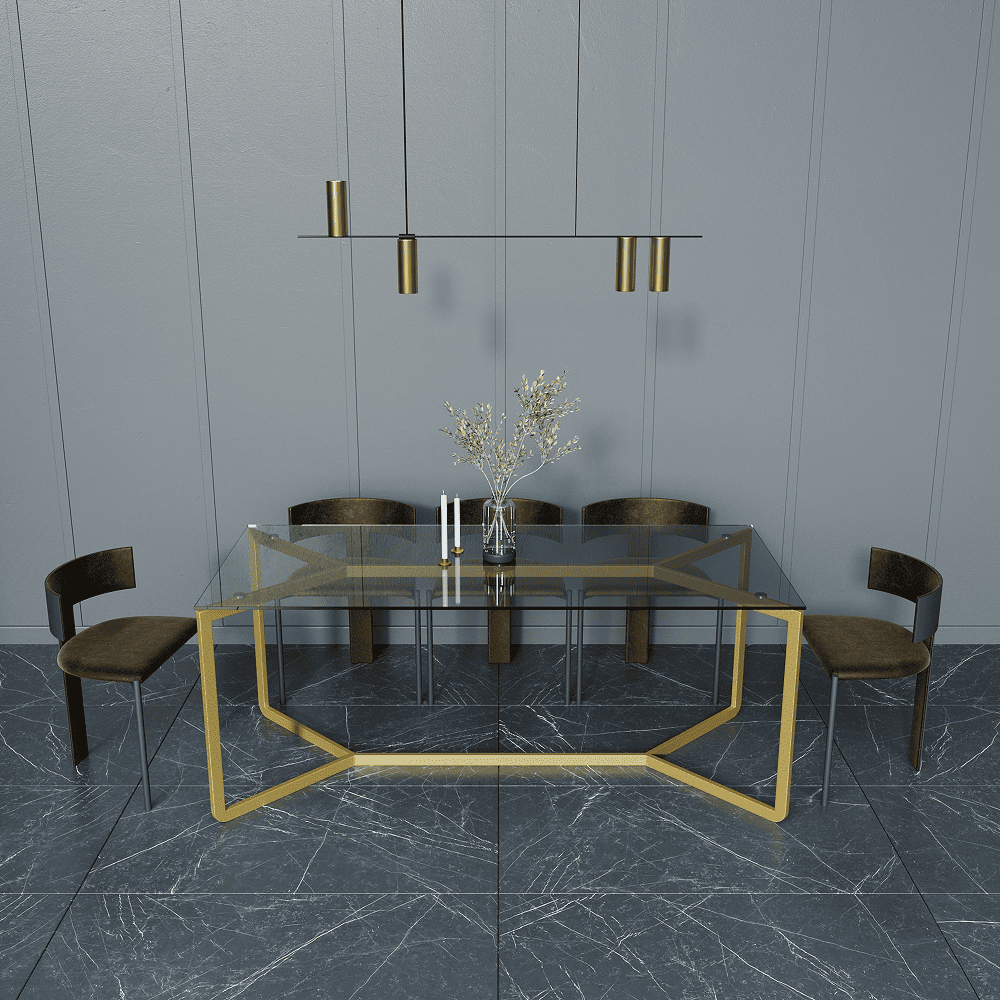 Прямоугольный кухонный стол, состоящий из прозрачного закаленного стекла толщиной 1 см и золотого металлического подстолья, не только прекрасно впишется в интерьер вашего дома, но и станет незаменимым элементом вашего обеденного пространства. Он прекрасно сочетается со стилем LOFT и однозначно будет притягивать взгляды окружающих.