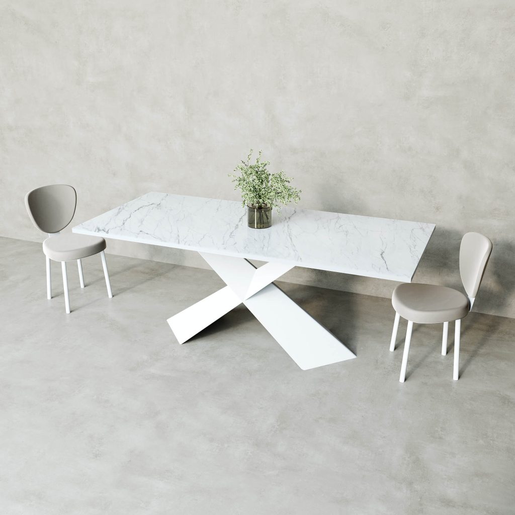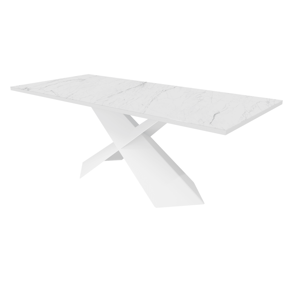 - Обеденный стол LINBOW Wood + Glass 200 х 80 см, белый мрамор/белый