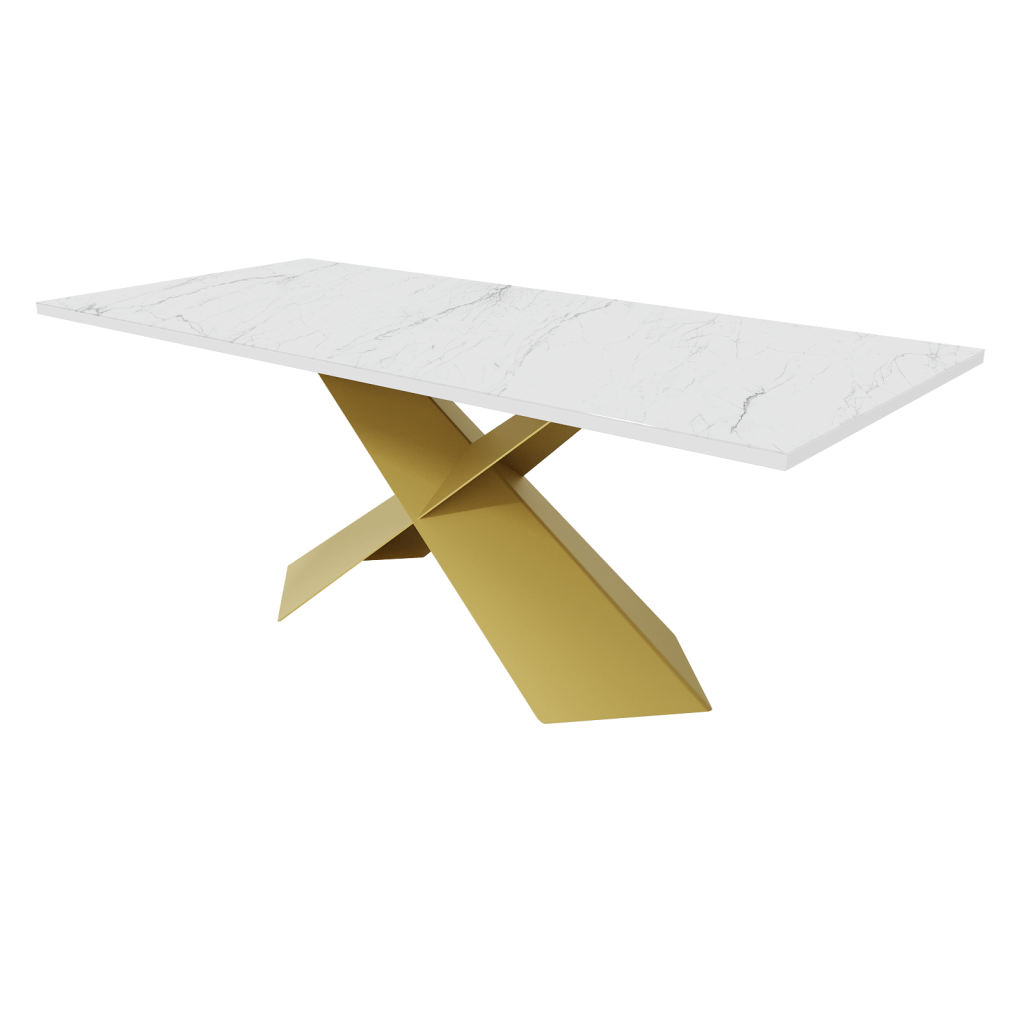 Обеденный стол LINBOW Wood + Glass 200 х 80 см, белый мрамор/золотой