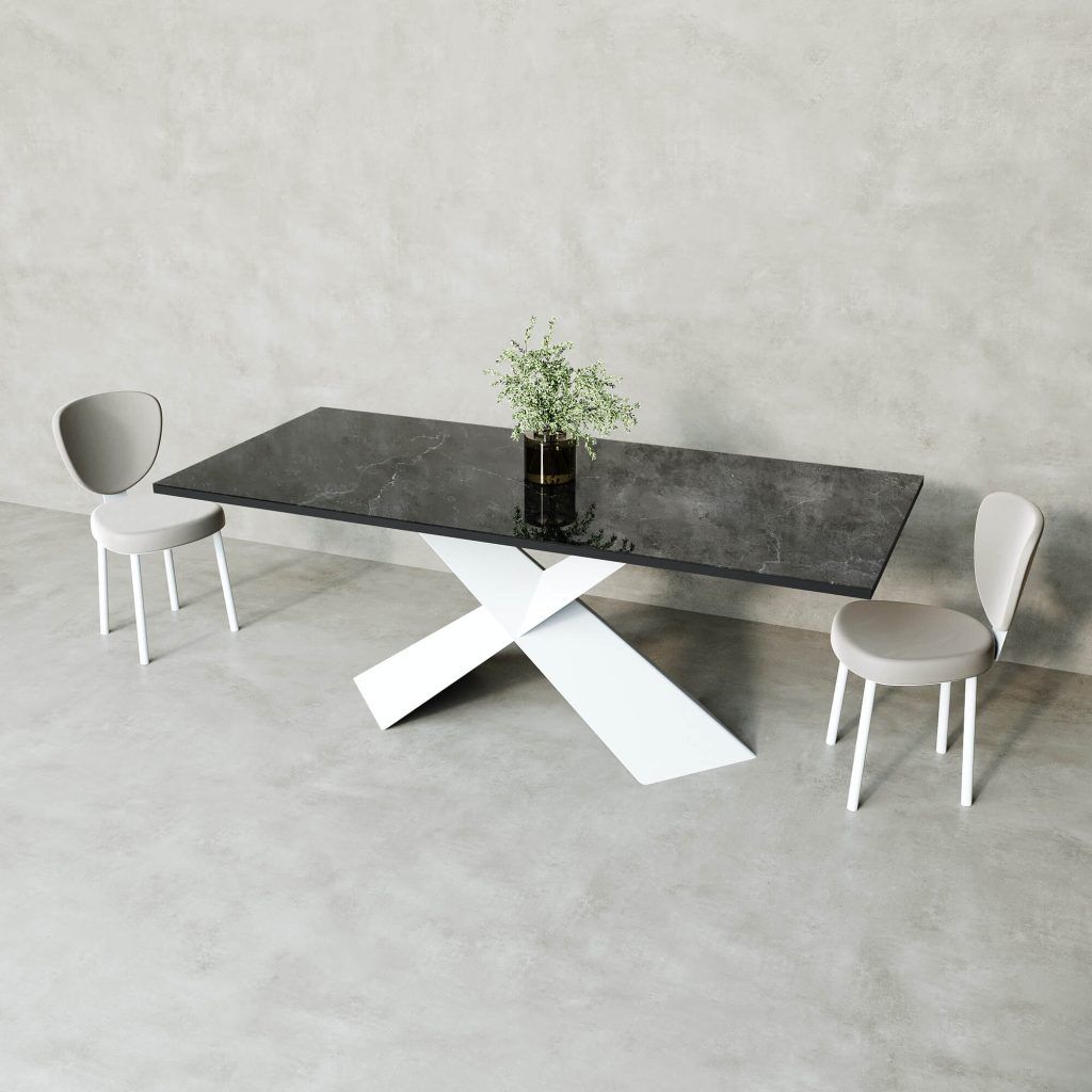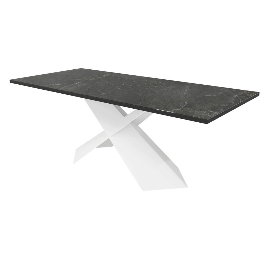 Обеденный стол LINBOW Wood + Glass 200 х 80 см, темный мрамор/белый