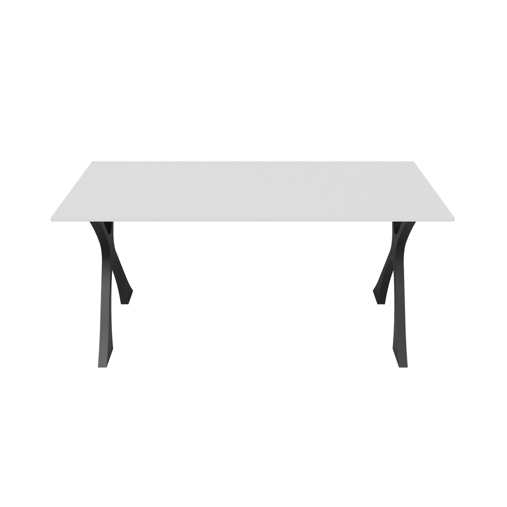 Ключевой элемент дизайна — изящное X-образное подстолье, его строгие прямые линии создают ощущение современности и элегантности. Стандартный вариант – золотое, черное и белое матовое покрытие, придающее столу лаконичный и стильный вид, идеально подходящий для минималистичных и современных интерьеров. Столешница ЛДСП премиального качества цвета орех толщиной 1.6 см, которая гарантирует устойчивость стола к повседневным нагрузкам, а также придает ему солидный и основательный вид.