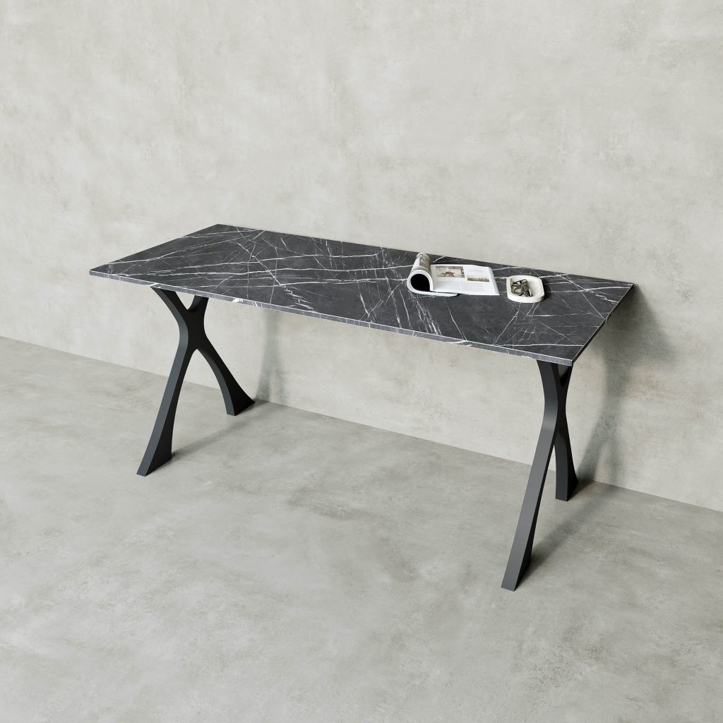 - Обеденный стол TEYDOR 160 х 70 см, темный мрамор/черный