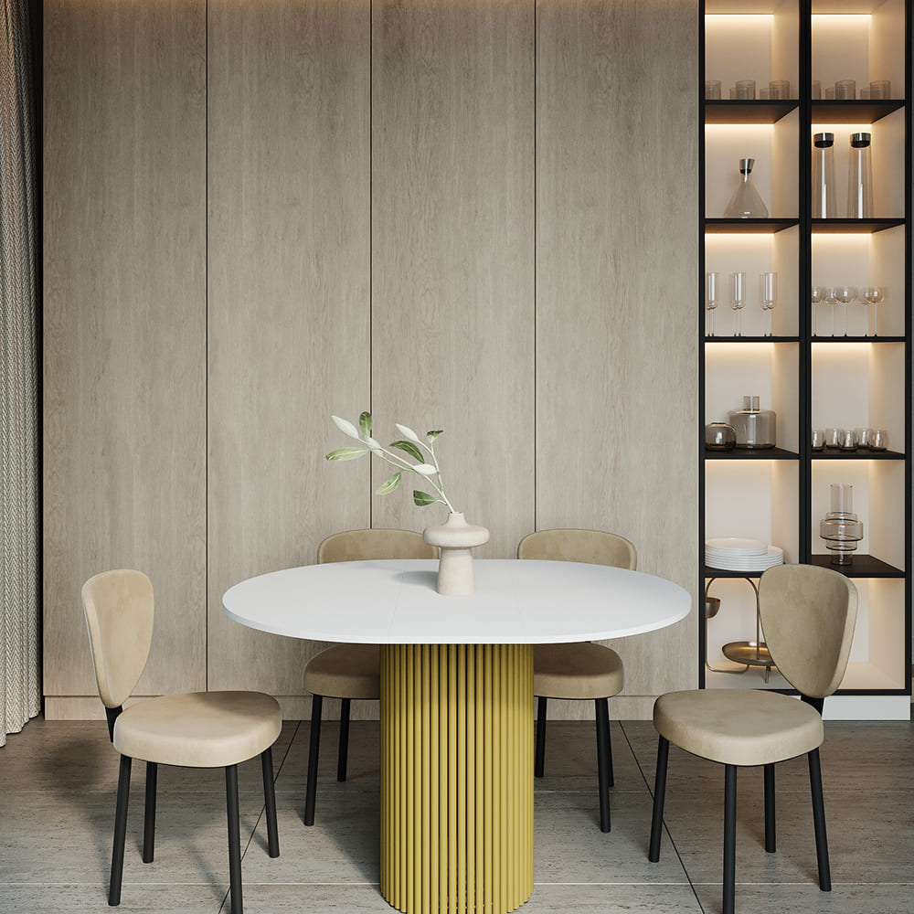 - Обеденный стол TRUBIS L Max D90/120 х 90 см, белый/золотой