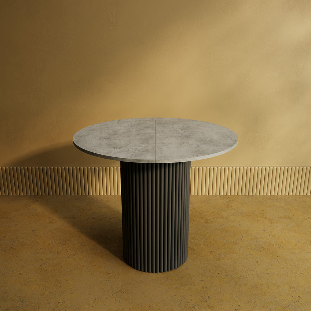Обеденный стол TRUBIS L Max D90/120 х 90 см, бетон/черный