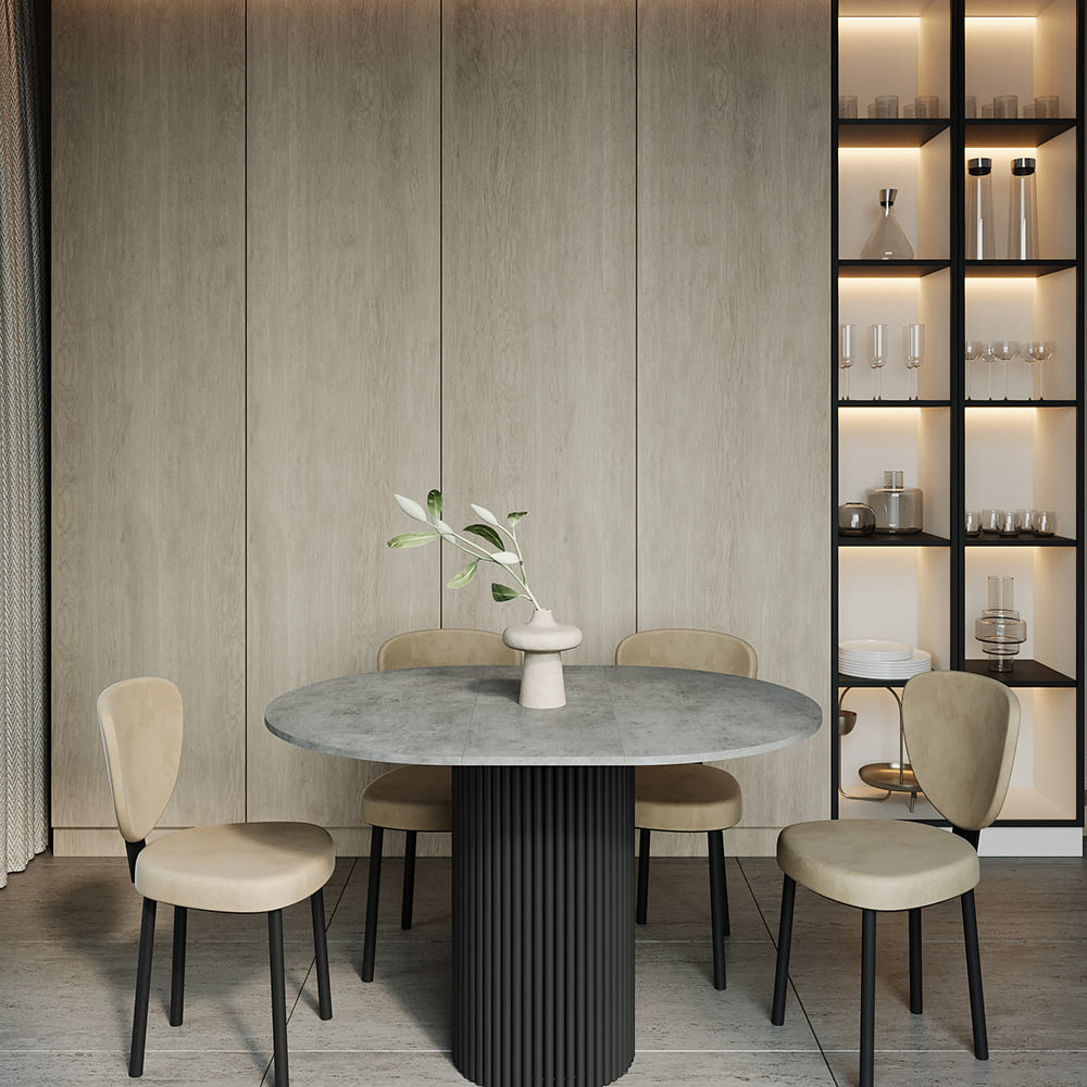 - Обеденный стол TRUBIS L Max D90/120 х 90 см, бетон/черный