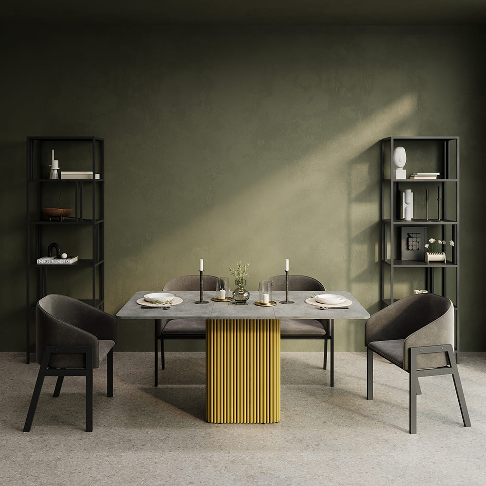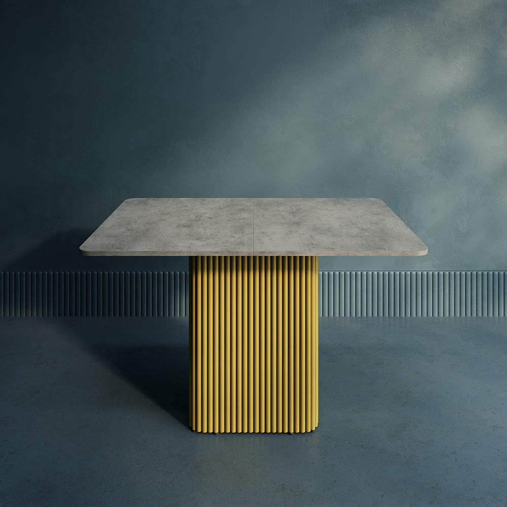 - Обеденный стол TRUBIS R Max 120/160 х 80 см, бетон/золотой