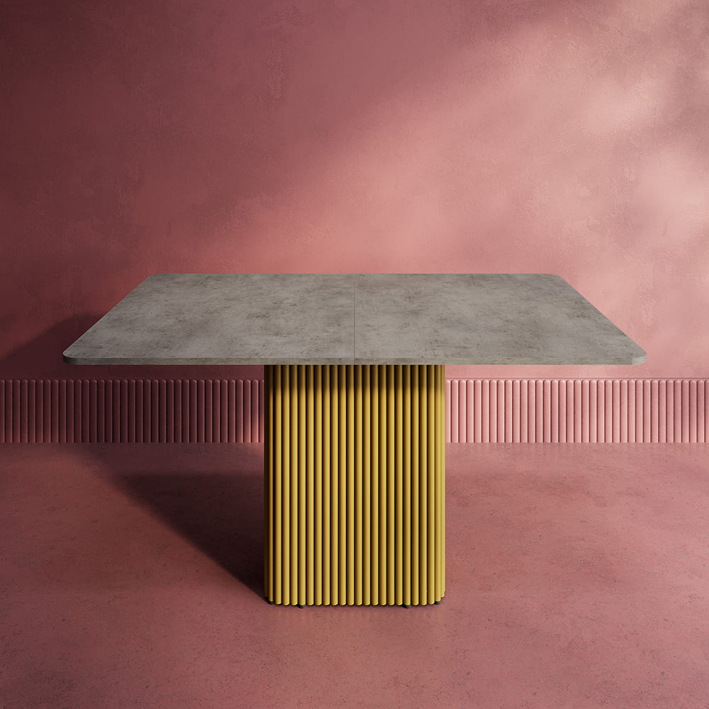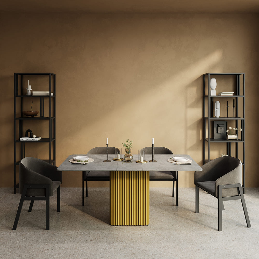 - Обеденный стол TRUBIS R Max 140/170 х 90 см, бетон/золотой