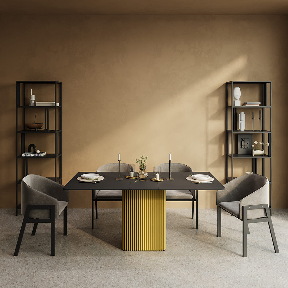 Обеденный стол TRUBIS R Max 140/170 х 90 см, черный/золотой