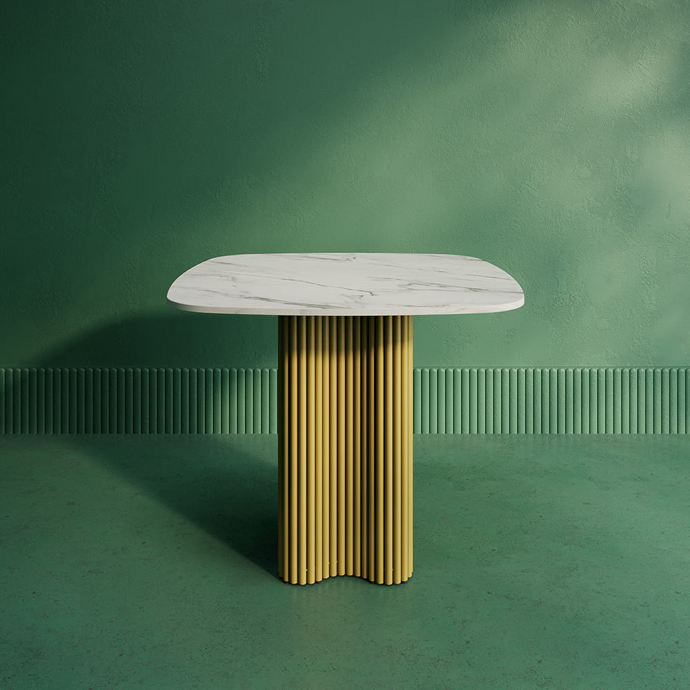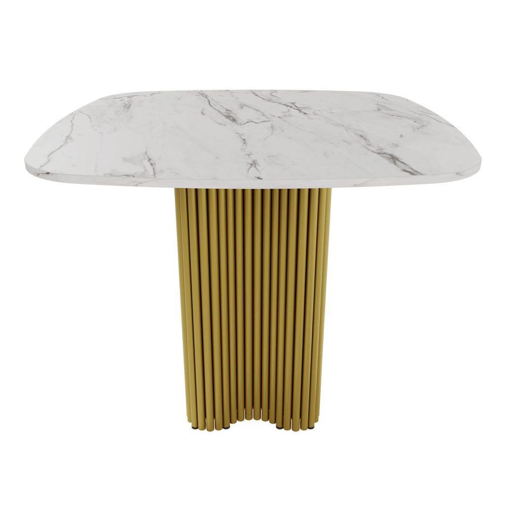 - Обеденный стол TRUBIS Wood CLEVER 90 см, белый мрамор/золотой
