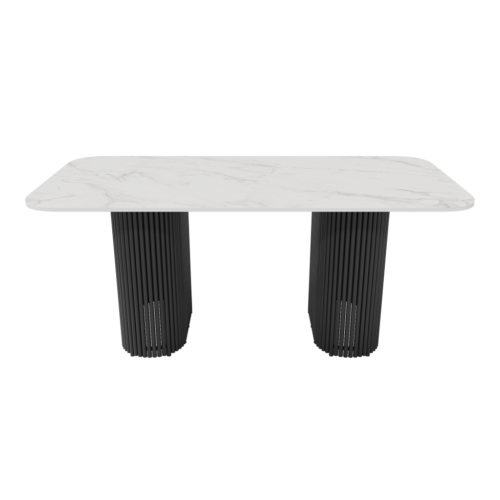 - Обеденный стол TRUBIS Wood + Glass белый мрамор/черный, 180 х 90 см r150