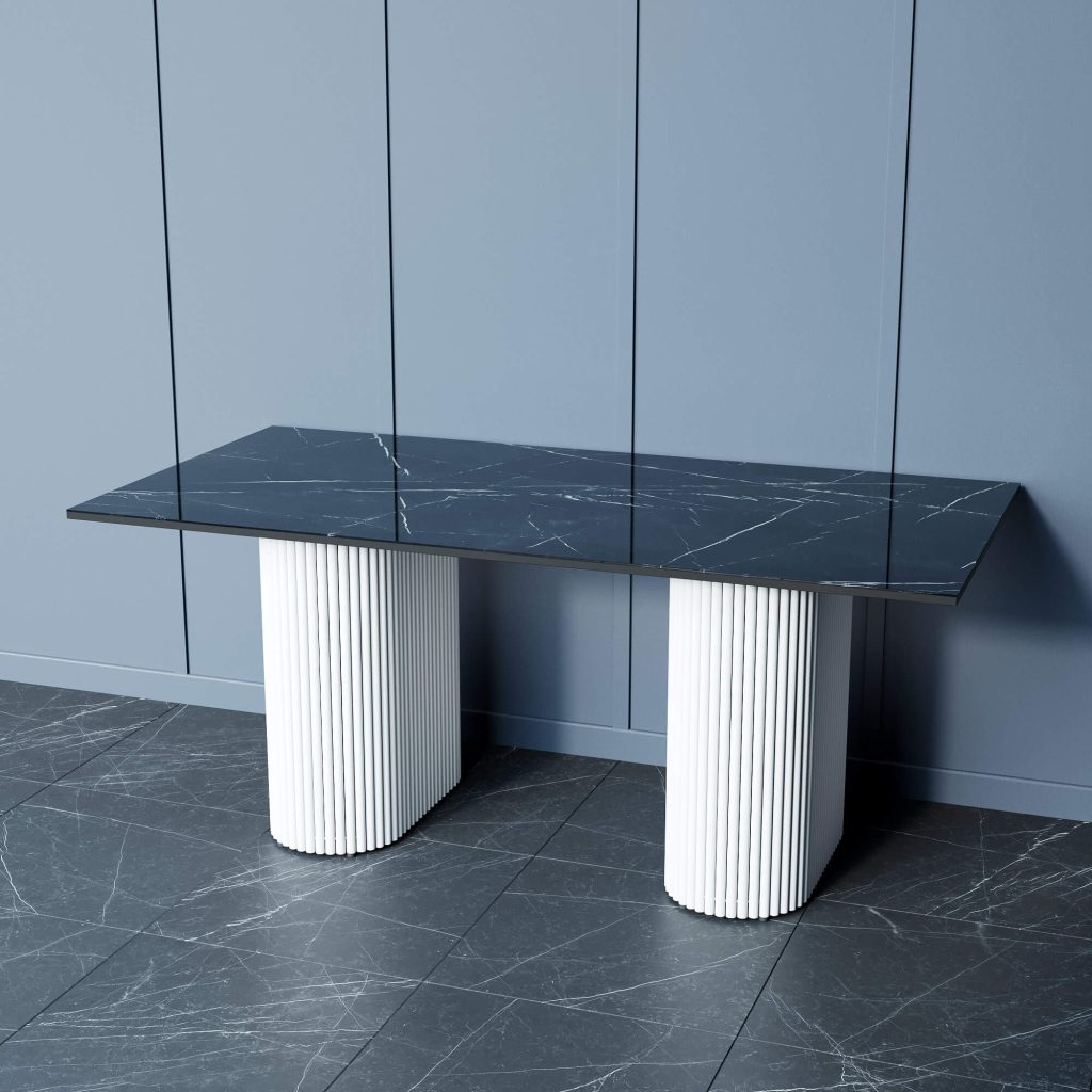 Обеденный стол TRUBIS Wood + Glass темный мрамор/белый, 180 х 90 см