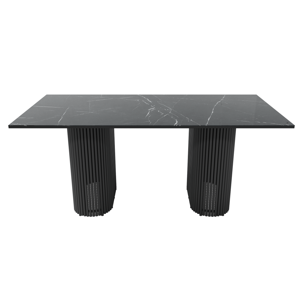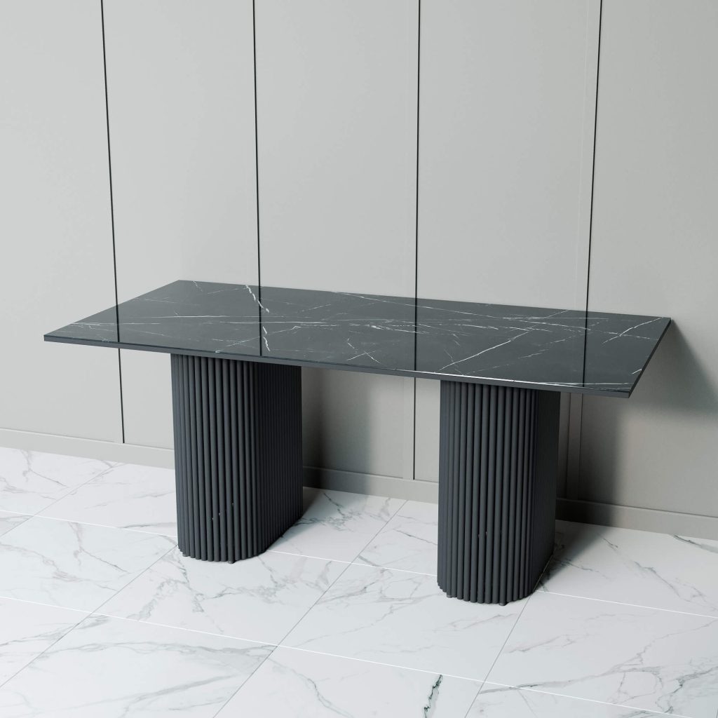 - Обеденный стол TRUBIS Wood + Glass темный мрамор/черный, 180 х 90 см