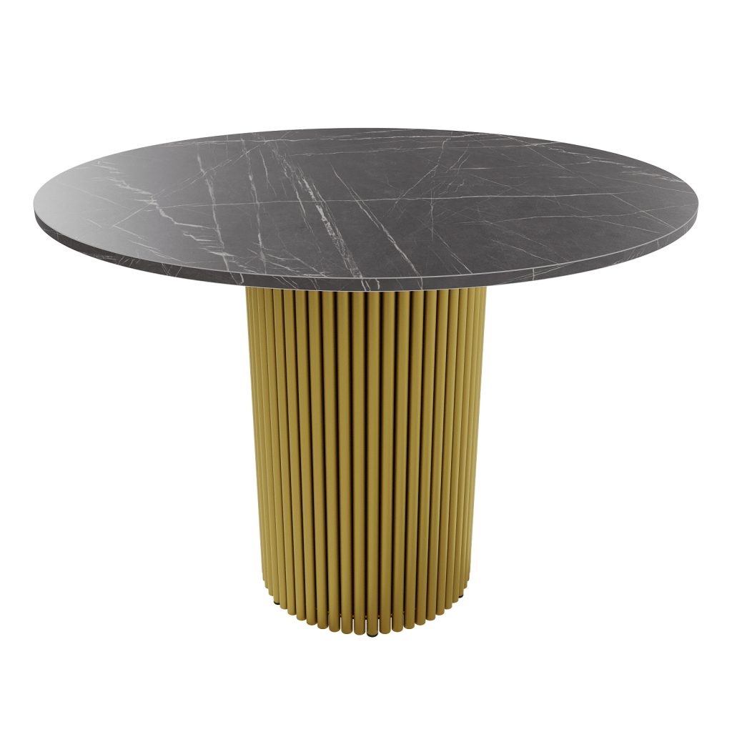 - Обеденный стол TRUBIS Wood L D100 см, темный мрамор/золотой
