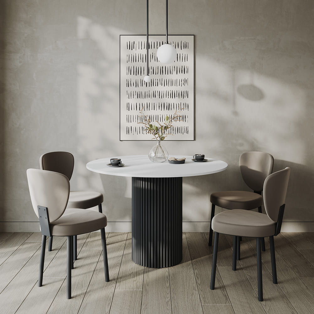 - Обеденный стол TRUBIS Wood L D110 см, белый/черный