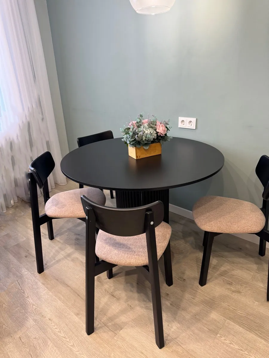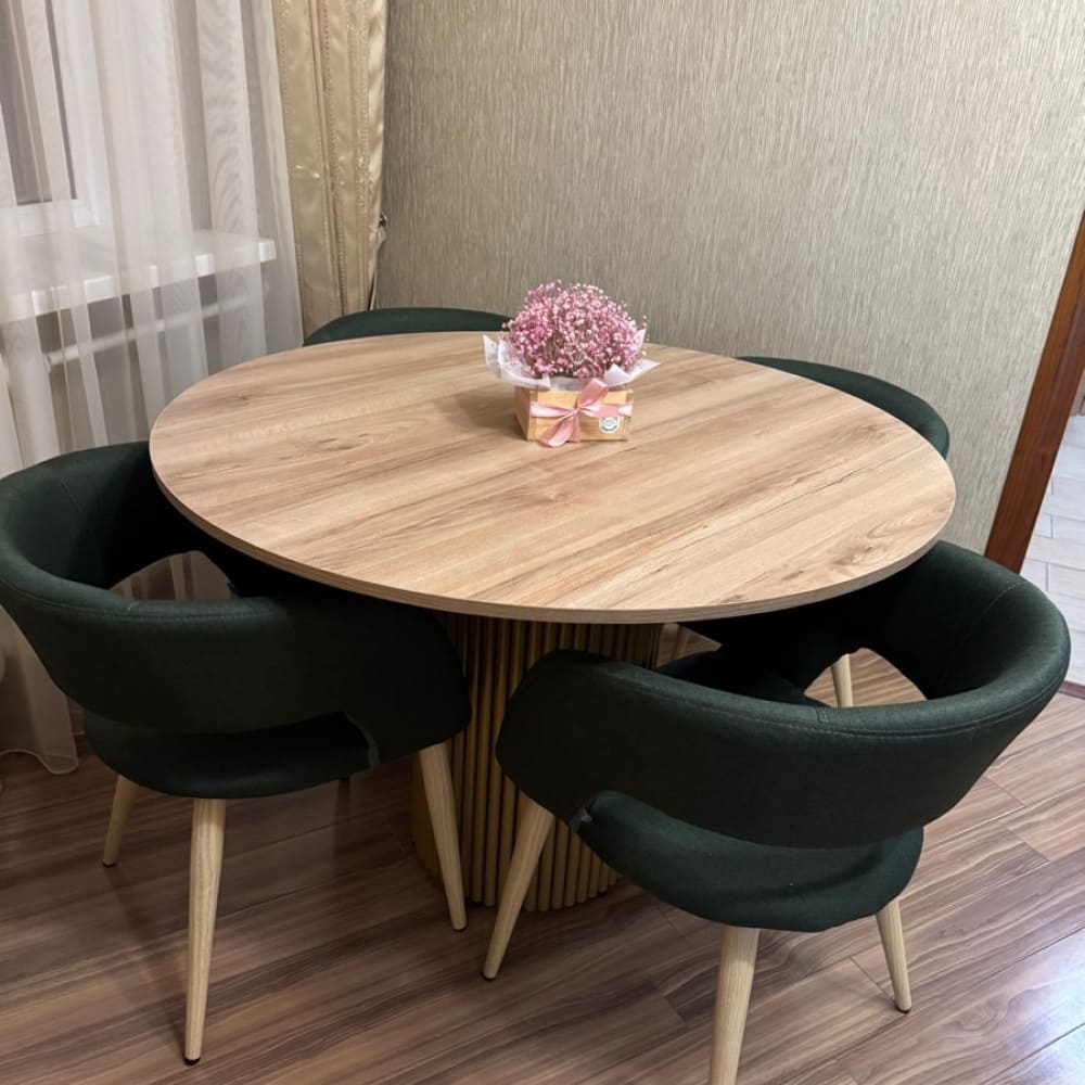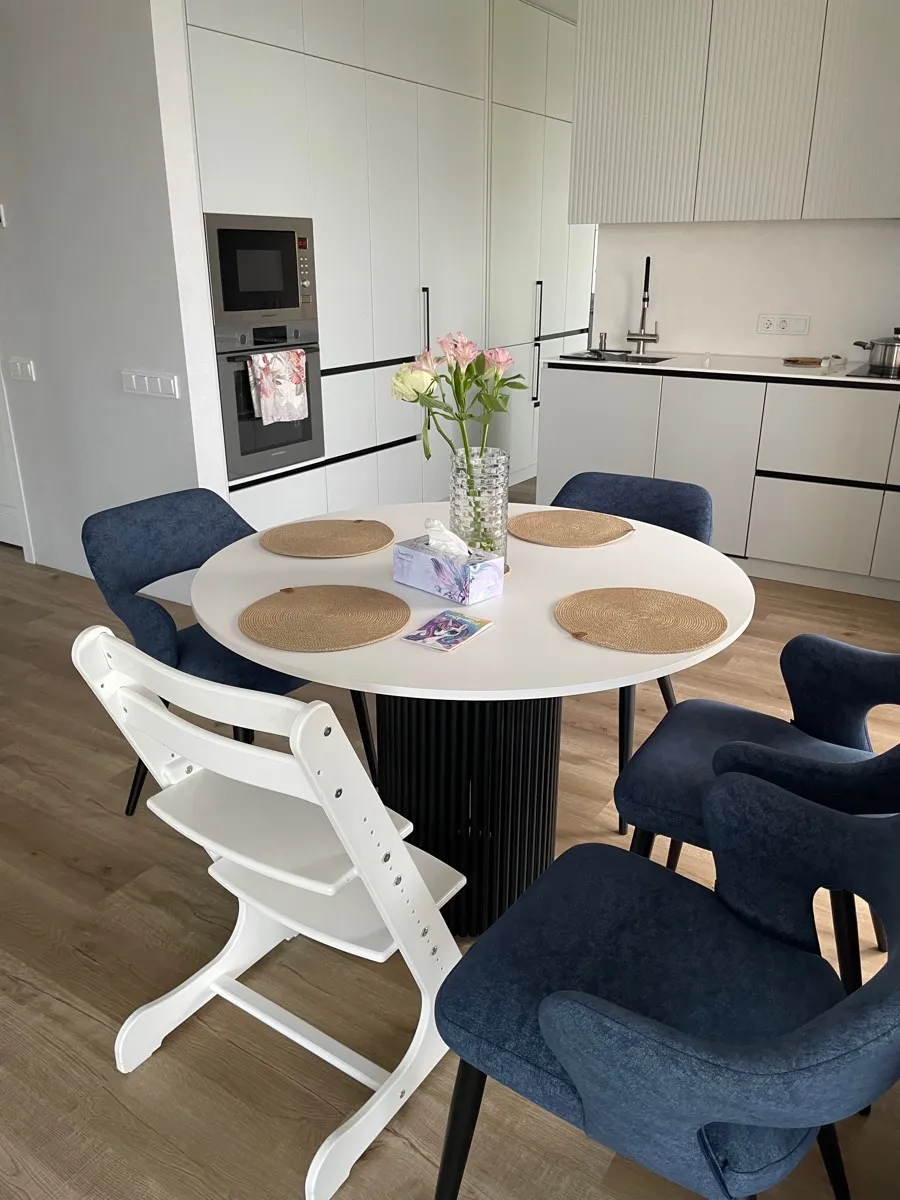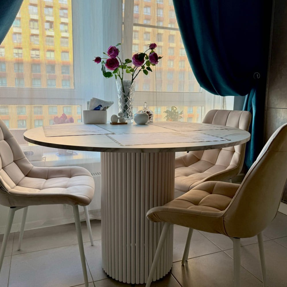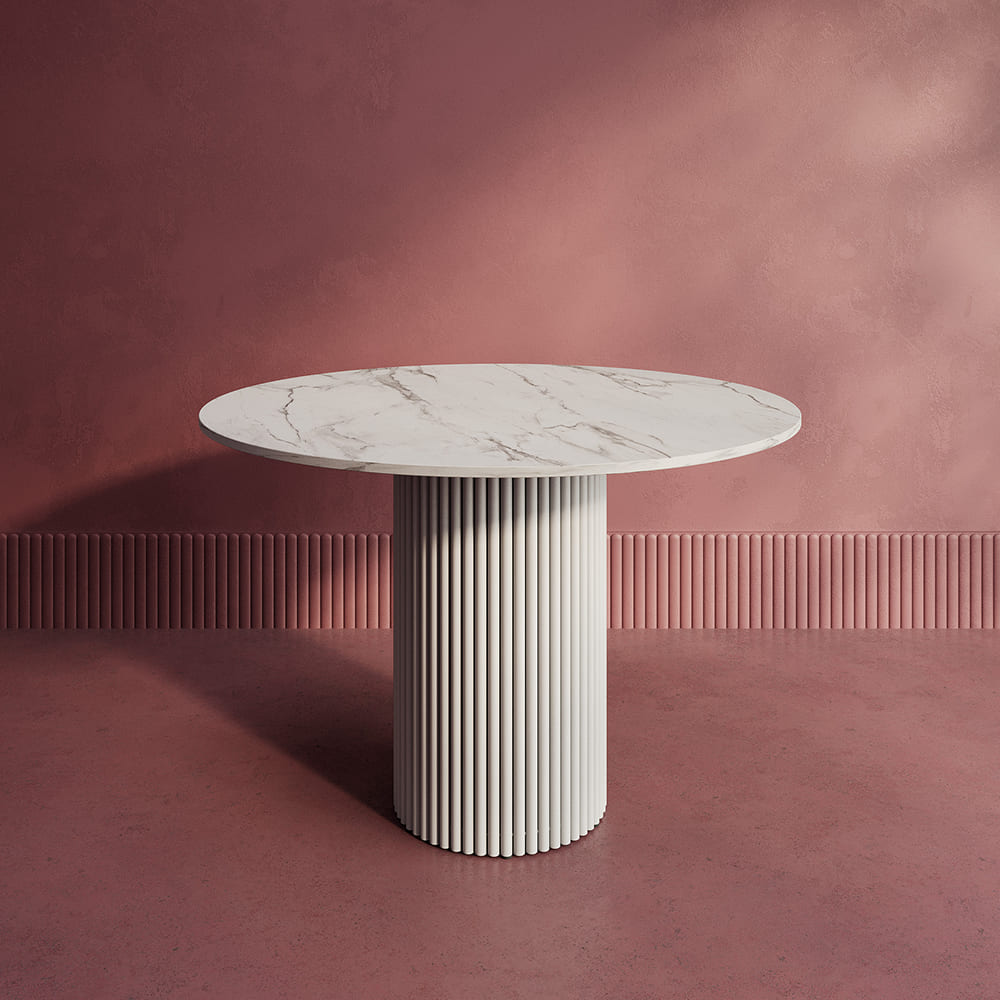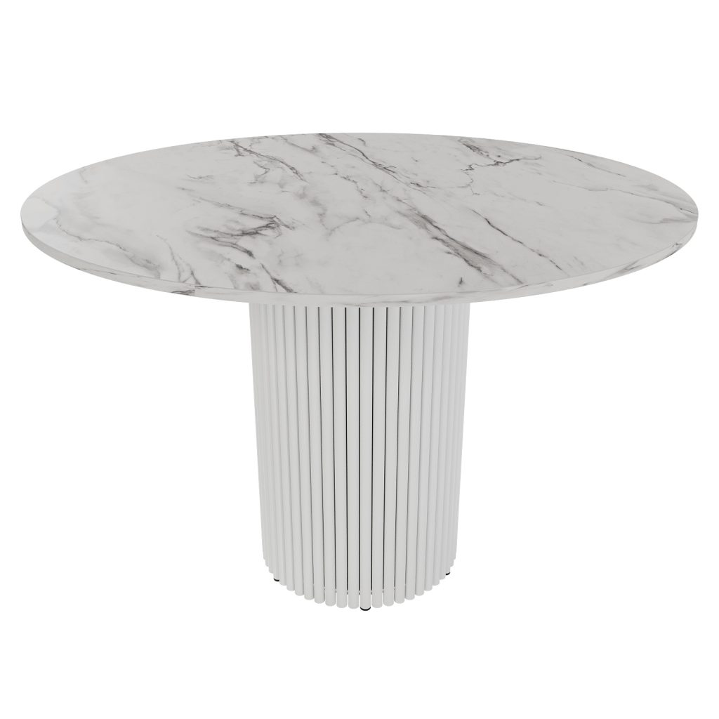 - Обеденный стол TRUBIS Wood L D110 см, белый мрамор/белый