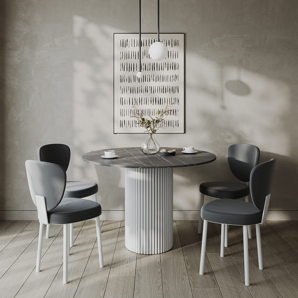 Обеденный стол TRUBIS Wood L D110 см, темный мрамор/белый