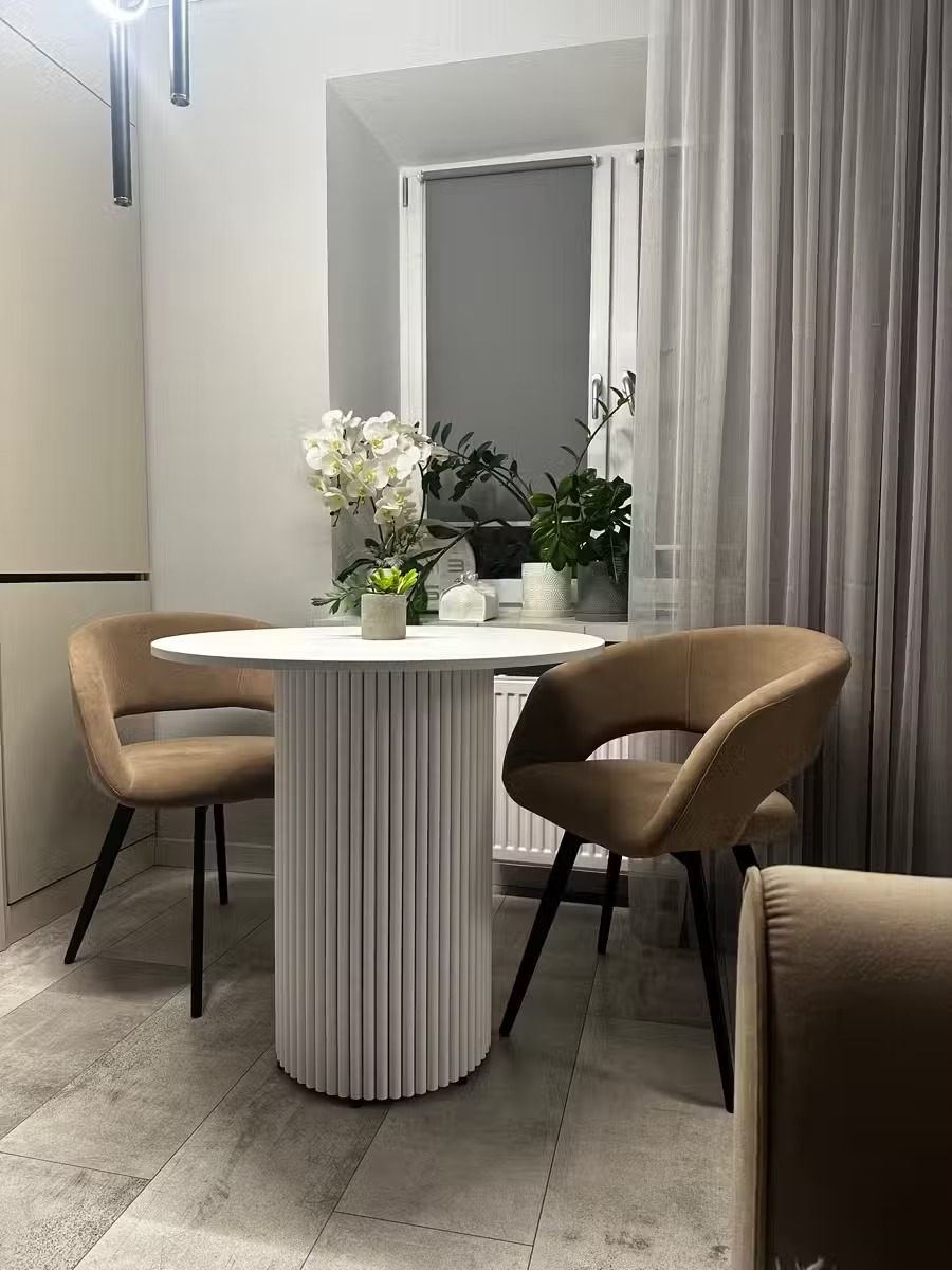 - Обеденный стол TRUBIS Wood L D80 см, белый мрамор/белый