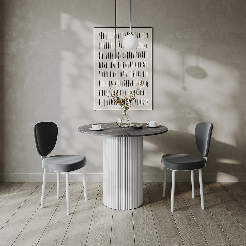 - Обеденный стол TRUBIS Wood L D90 см, темный мрамор/белый