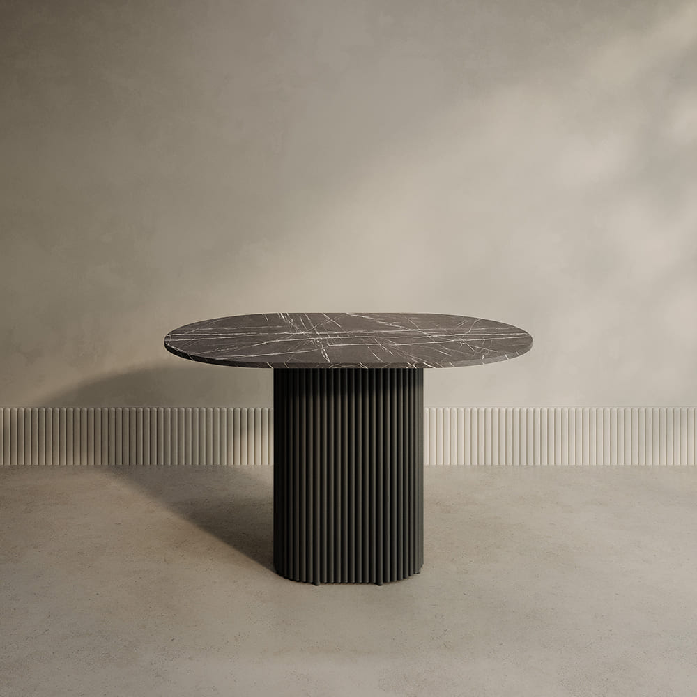 Обеденный стол TRUBIS Wood Oval 120 х 80 см, темный мрамор/черный
