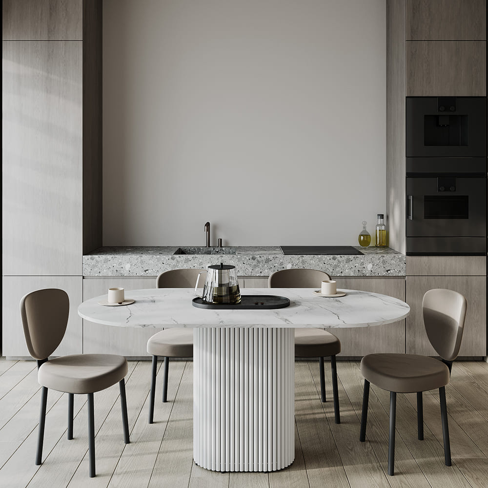 - Обеденный стол TRUBIS Wood Oval 160 х 80 см, белый мрамор/белый