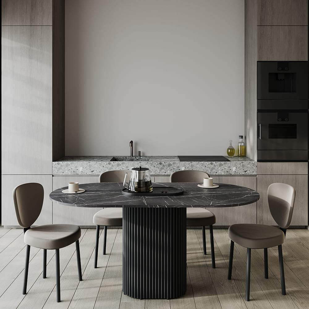 - Обеденный стол TRUBIS Wood Oval 160 х 80 см, темный мрамор/черный