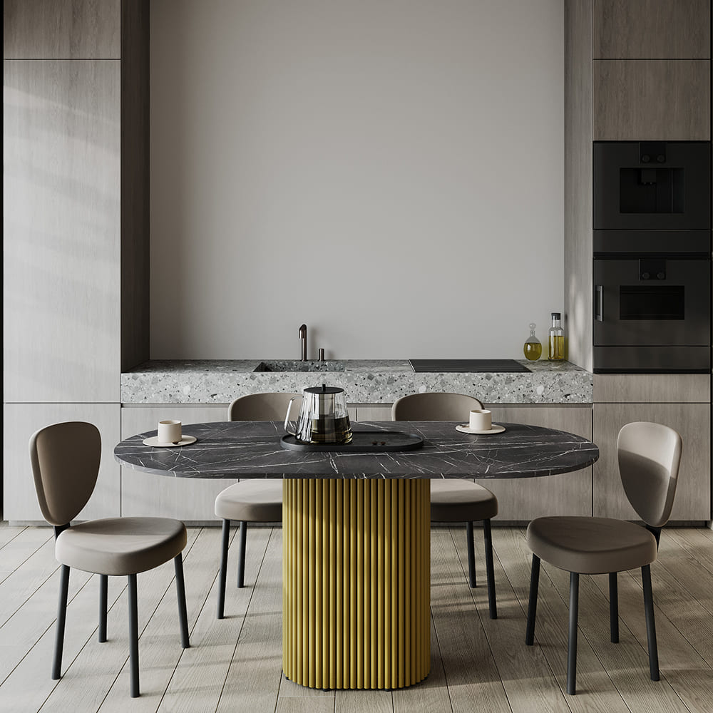 - Обеденный стол TRUBIS Wood Oval 160 х 80 см, темный мрамор/золотой