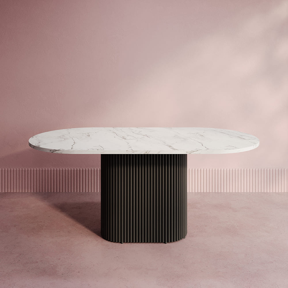 Обеденный стол TRUBIS Wood Oval 180 х 90 см, белый мрамор/черный