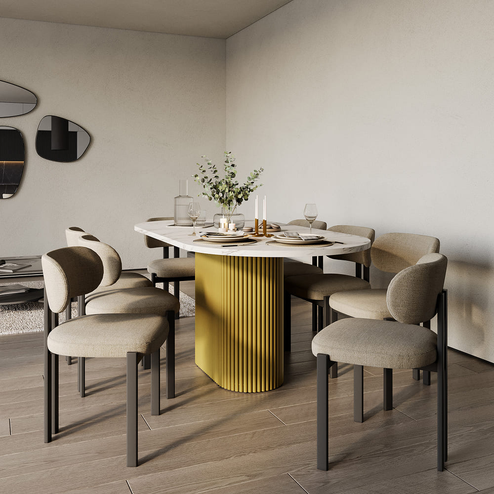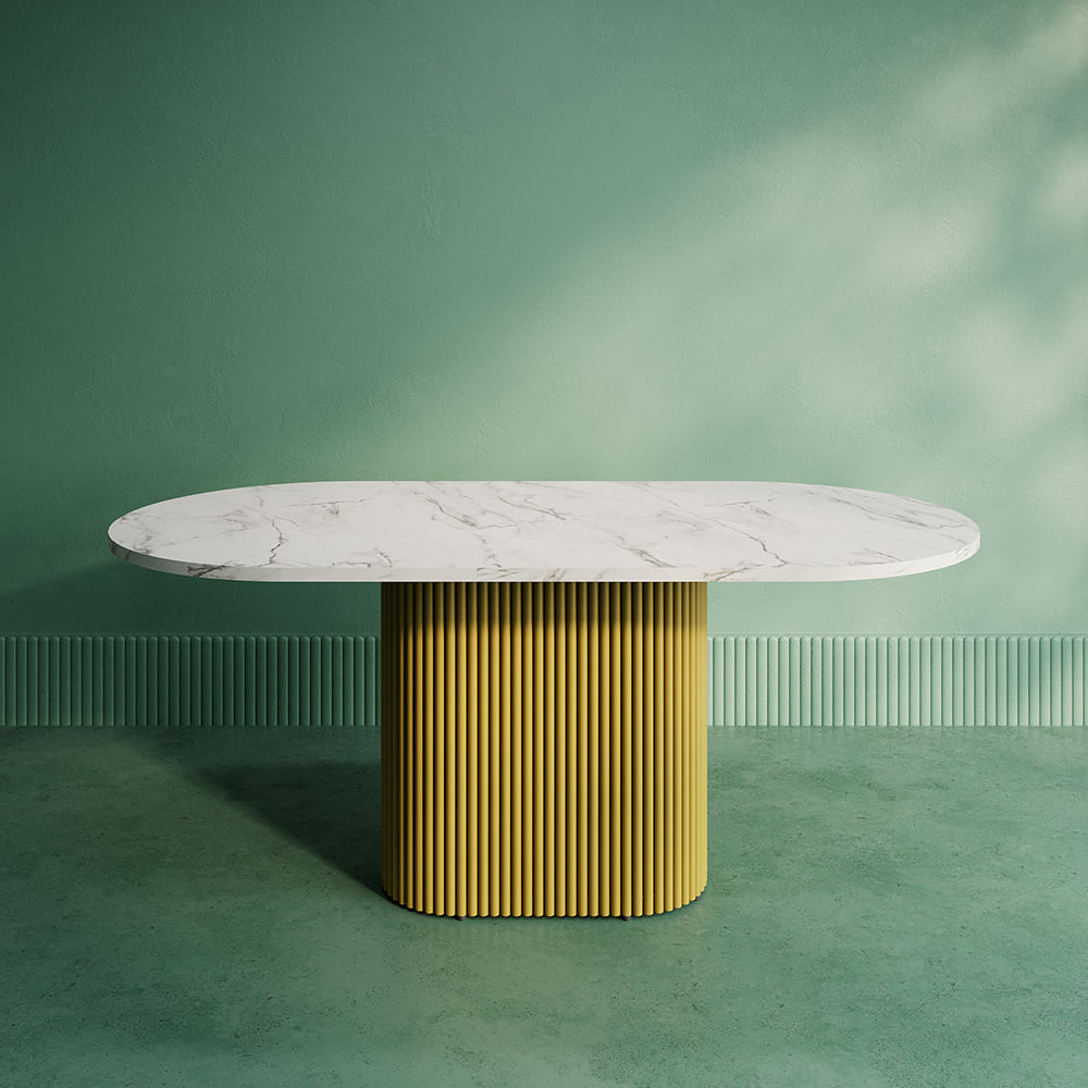 Обеденный стол TRUBIS Wood Oval 180 х 90 см, белый мрамор/золотой