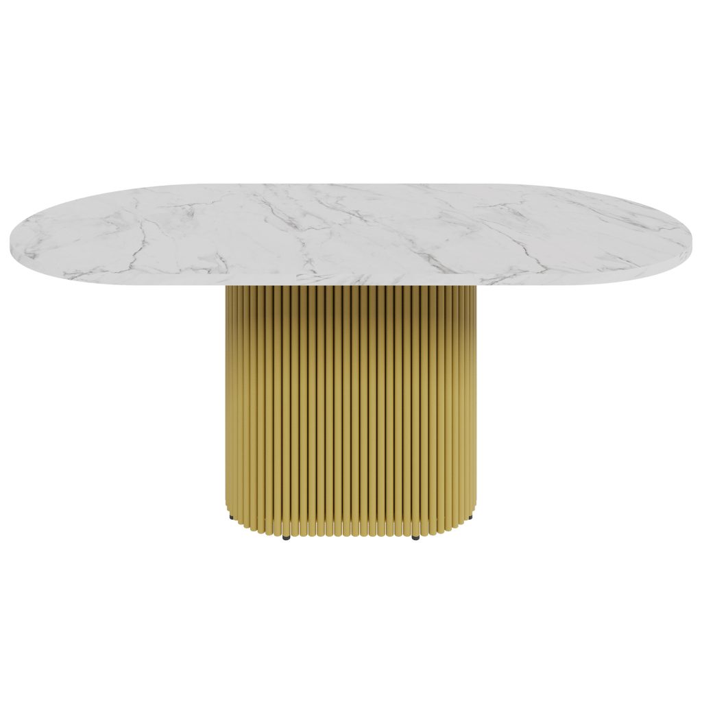 - Обеденный стол TRUBIS Wood Oval 180 х 90 см, белый мрамор/золотой
