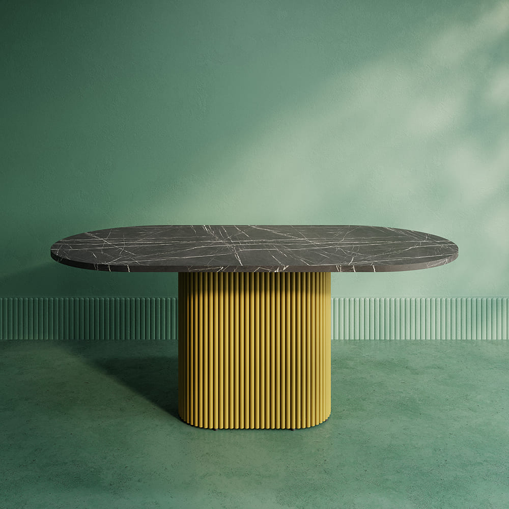 Обеденный стол TRUBIS Wood Oval 180 х 90 см, темный мрамор/золотой