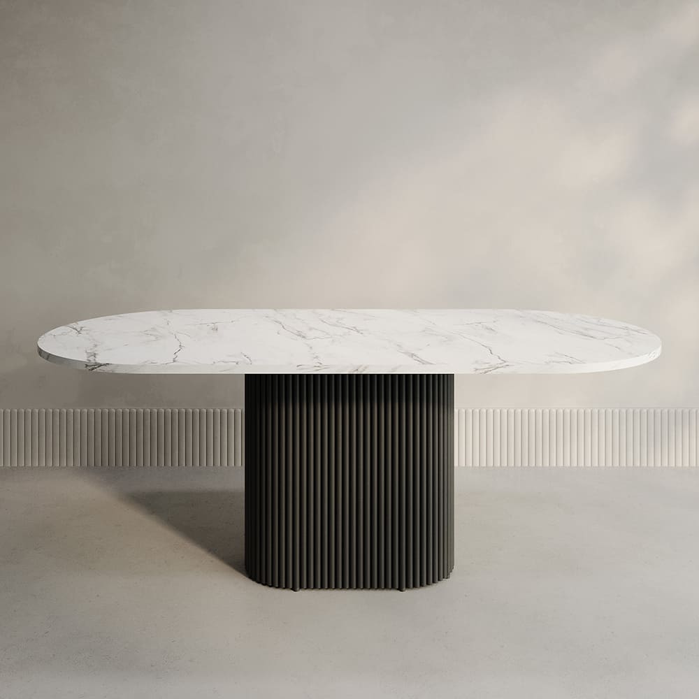 Обеденный стол TRUBIS Wood Oval 200 х 90 см, белый мрамор/черный