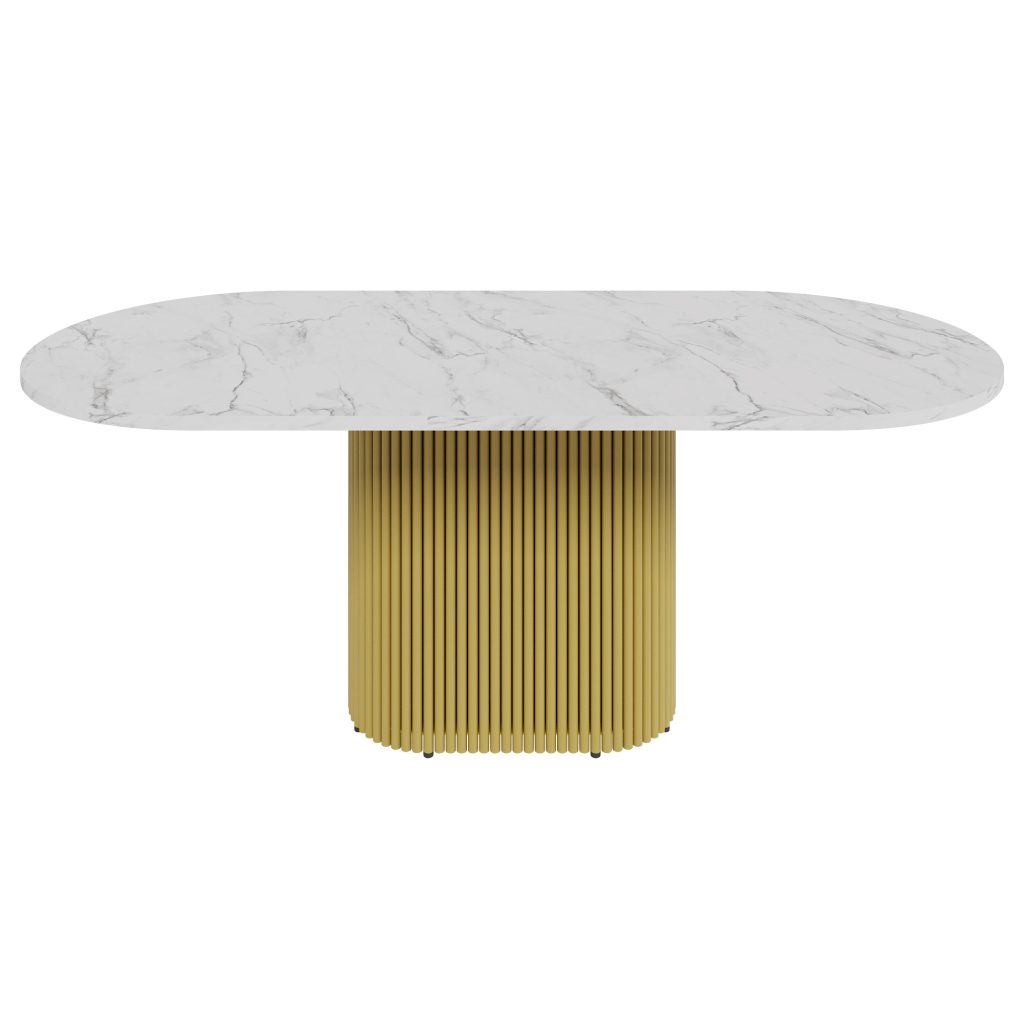Обеденный стол TRUBIS Wood Oval 200 х 90 см, белый мрамор/золотой
