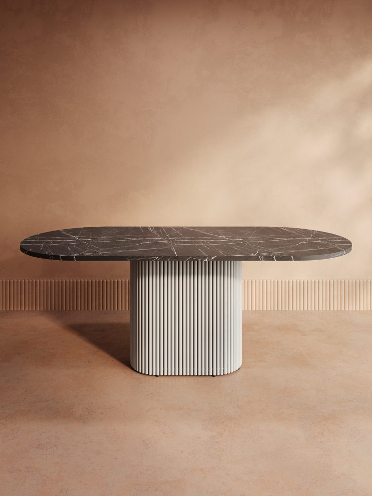 Обеденный стол TRUBIS Wood Oval 200 х 90 см, темный мрамор/белый