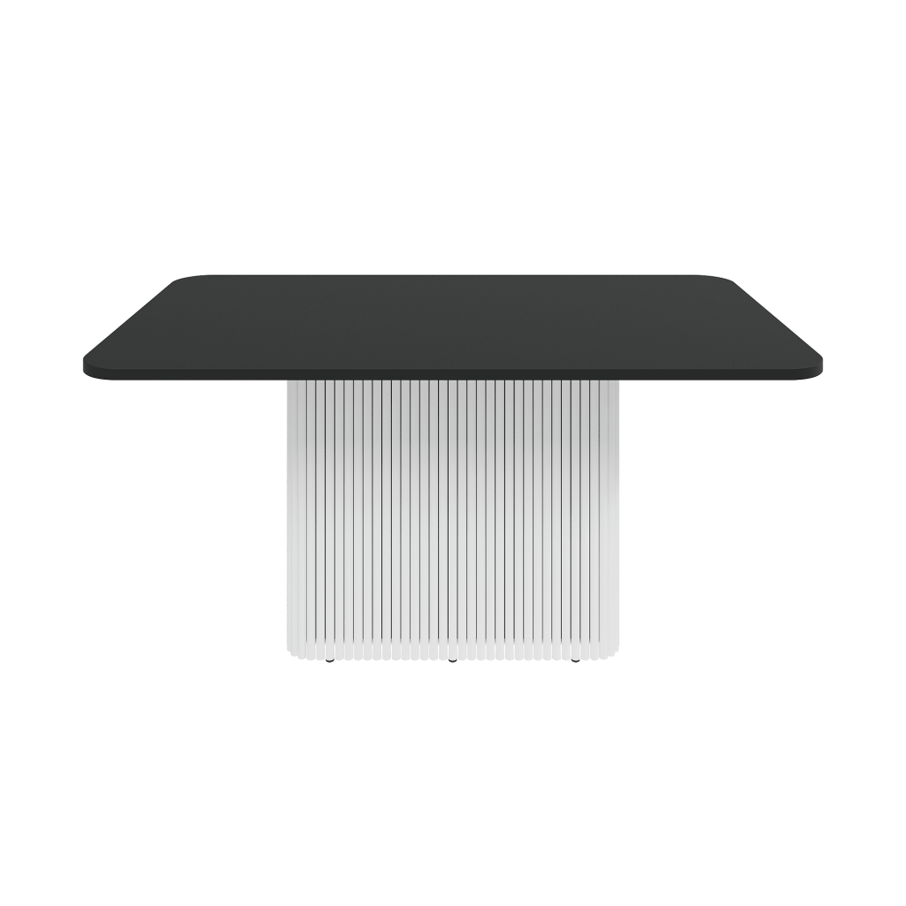Дизайнерский прямоугольный стол с металлическим рифлёным подстольем. Столешница ЛДСП толщиной 2.5 см прямоугольная с закругленными углами. Стандартный вариант – матовая порошковая окраска в золотой, чёрный или белый цвет. За столом комфортно разместится 4-6 человек. В комплекте имеются регулируемые ножки для устойчивости стола на неровных поверхностях.