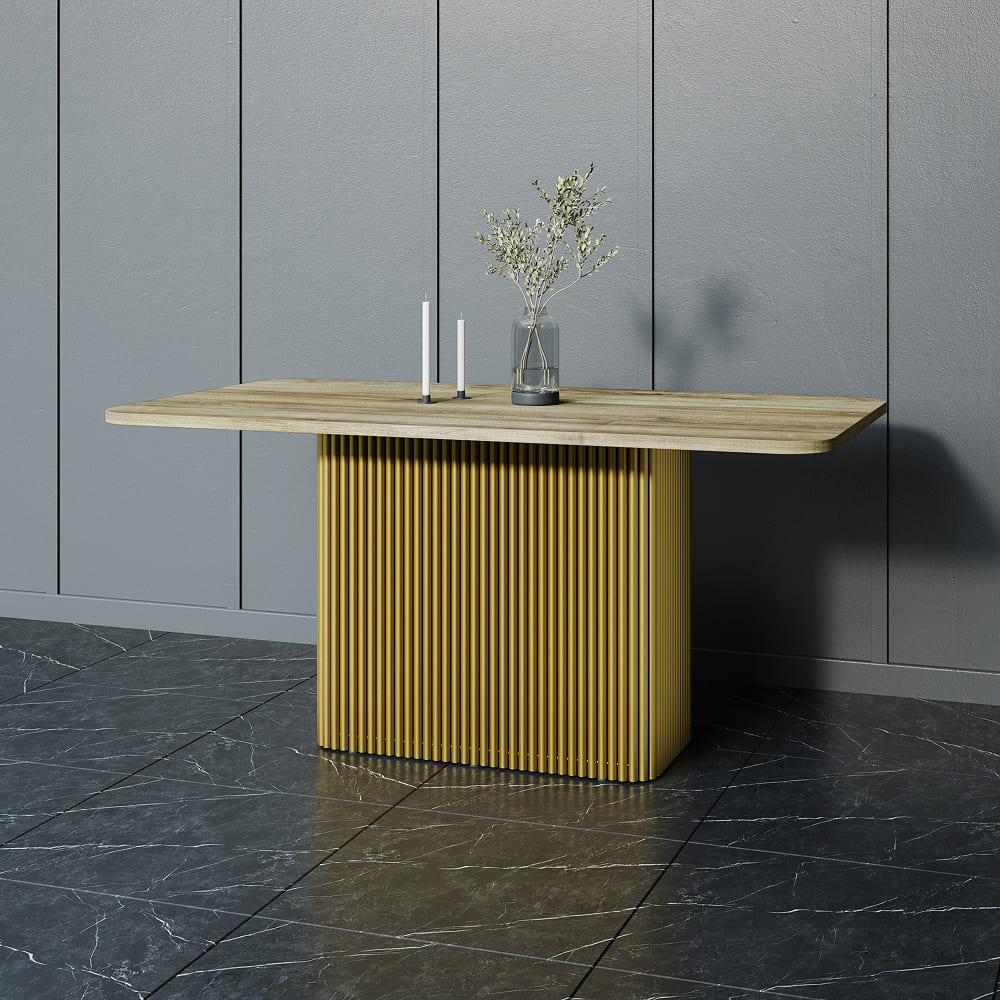 - Обеденный стол TRUBIS Wood Rectangle 160 х 80 см, орех/золотой