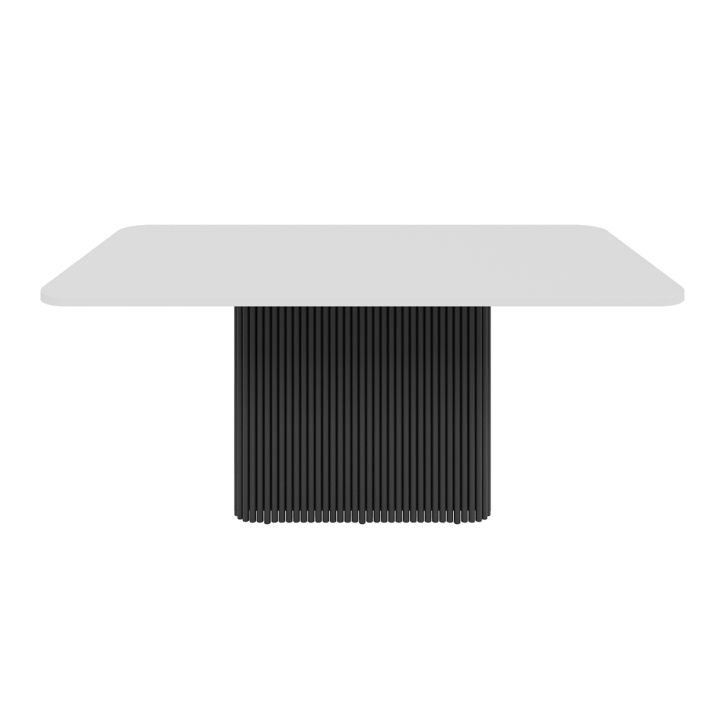 Дизайнерский прямоугольный стол с металлическим рифлёным подстольем. Столешница ЛДСП толщиной 2.5 см прямоугольная с закругленными углами. Стандартный вариант – матовая порошковая окраска в золотой, чёрный или белый цвет. За столом комфортно разместится 4-6 человек. В комплекте имеются регулируемые ножки для устойчивости стола на неровных поверхностях.