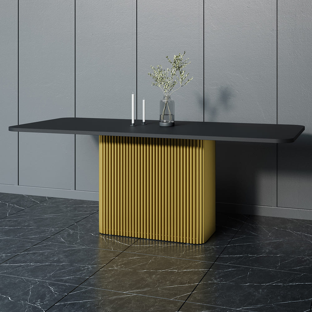 - Обеденный стол TRUBIS Wood Rectangle 200 х 90 см, черный/золотой